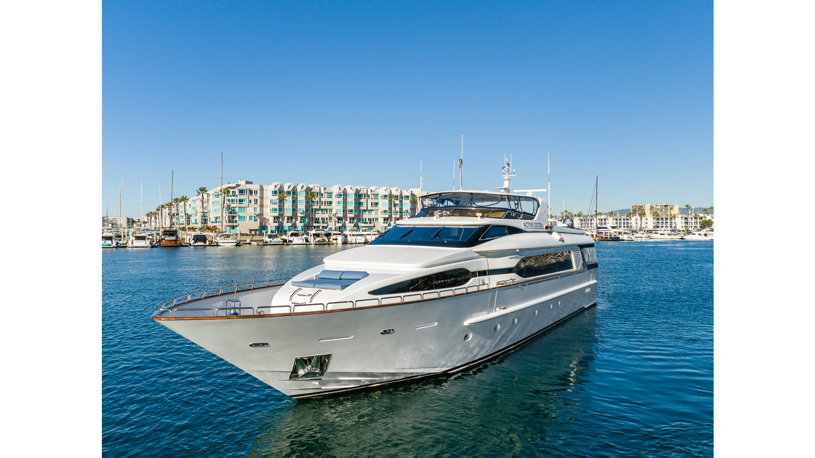 ACTIVE OCTO is a standout 104’ Destiny motor yacht, blending exceptional volume, renowned pedigree, and superior build quality. Designed by Evan K. Marshall, she offers timeless elegance with modern sophistication, highlighted by her wide-body design that maximizes interior and exterior living spaces. The interior exudes enduring luxury with high-gloss joinery and a refined crème-and-beige palette. The main salon flows seamlessly into a formal dining area and bar, ideal for entertaining while the chef-ready galley boasts updated Bosch and GE appliances, generous counter space, and elegant French doors with etched glass. Accommodations for up to eight guests include four beautifully appointed staterooms. The full-beam, bi-level master suite on the main deck provides exceptional privacy, complemented by a second impressive full-beam master on the lower deck with his-and-hers baths. Two additional guest staterooms (one double, one twin) each feature en-suite bathrooms. She is held in a transferable LLC.