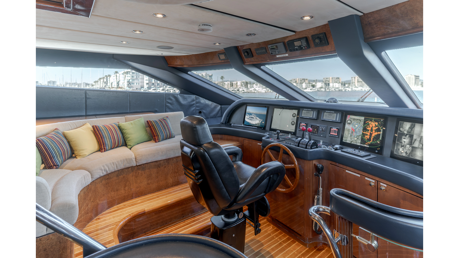 featuring a centerline helm chair, well laid out navigation consul, a large chart table and