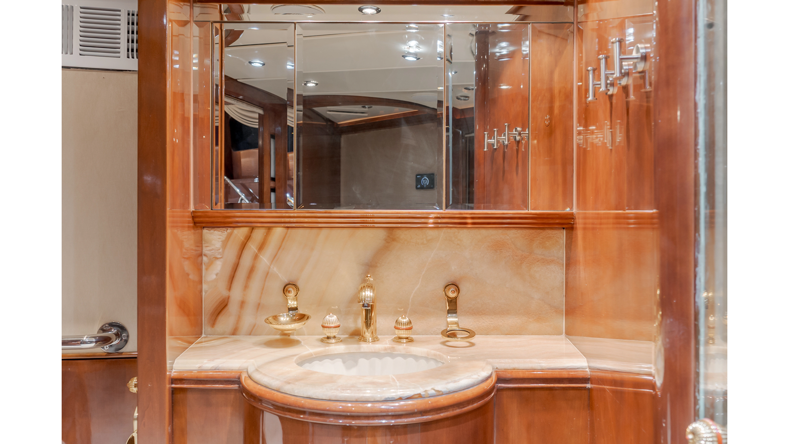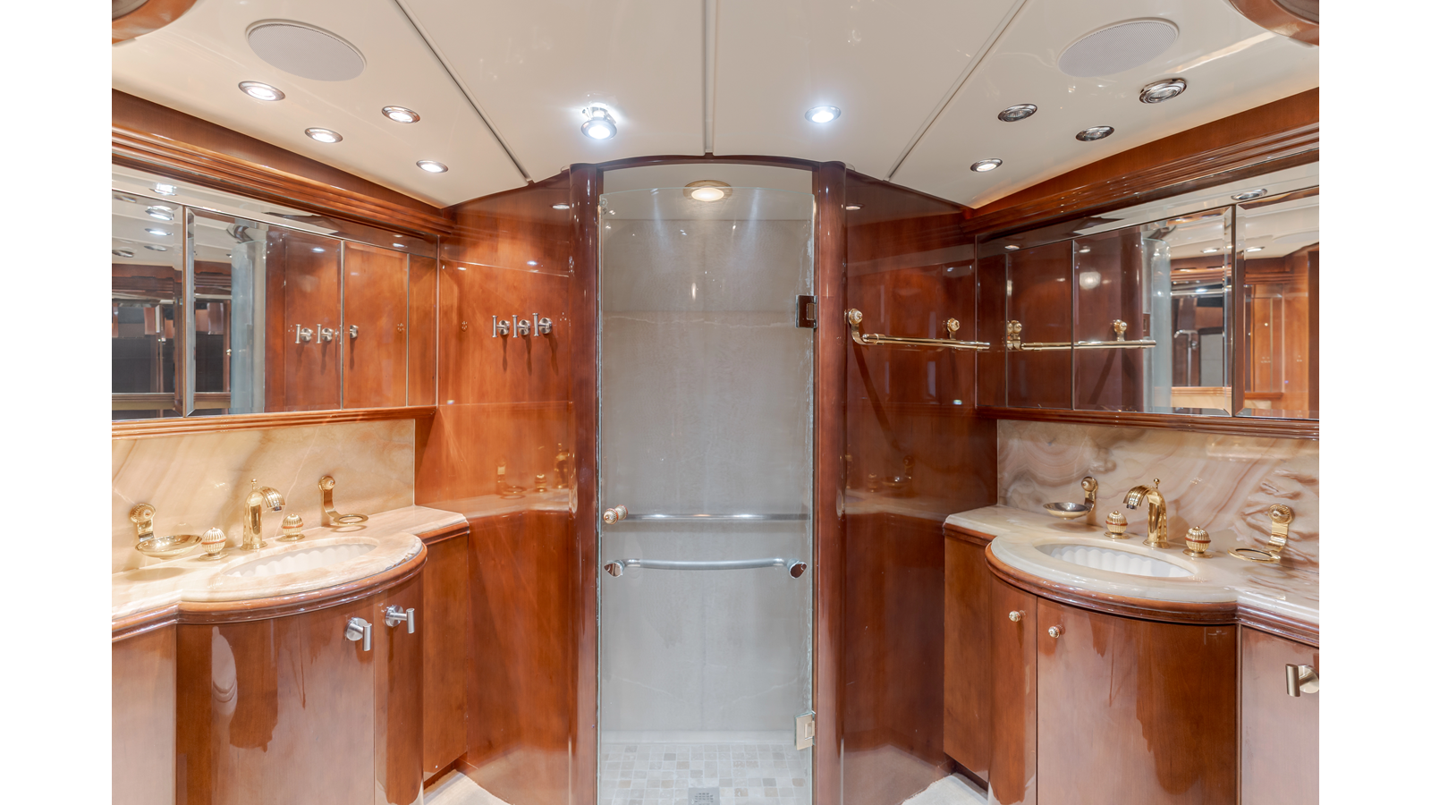 • 3 staterooms below deck, full-beam second master/ VIP cabin with his-and-hers bath