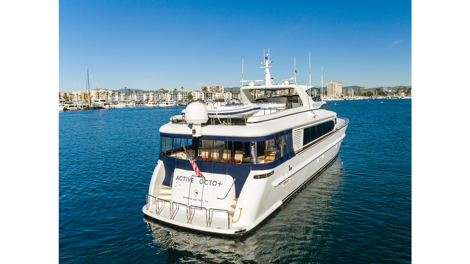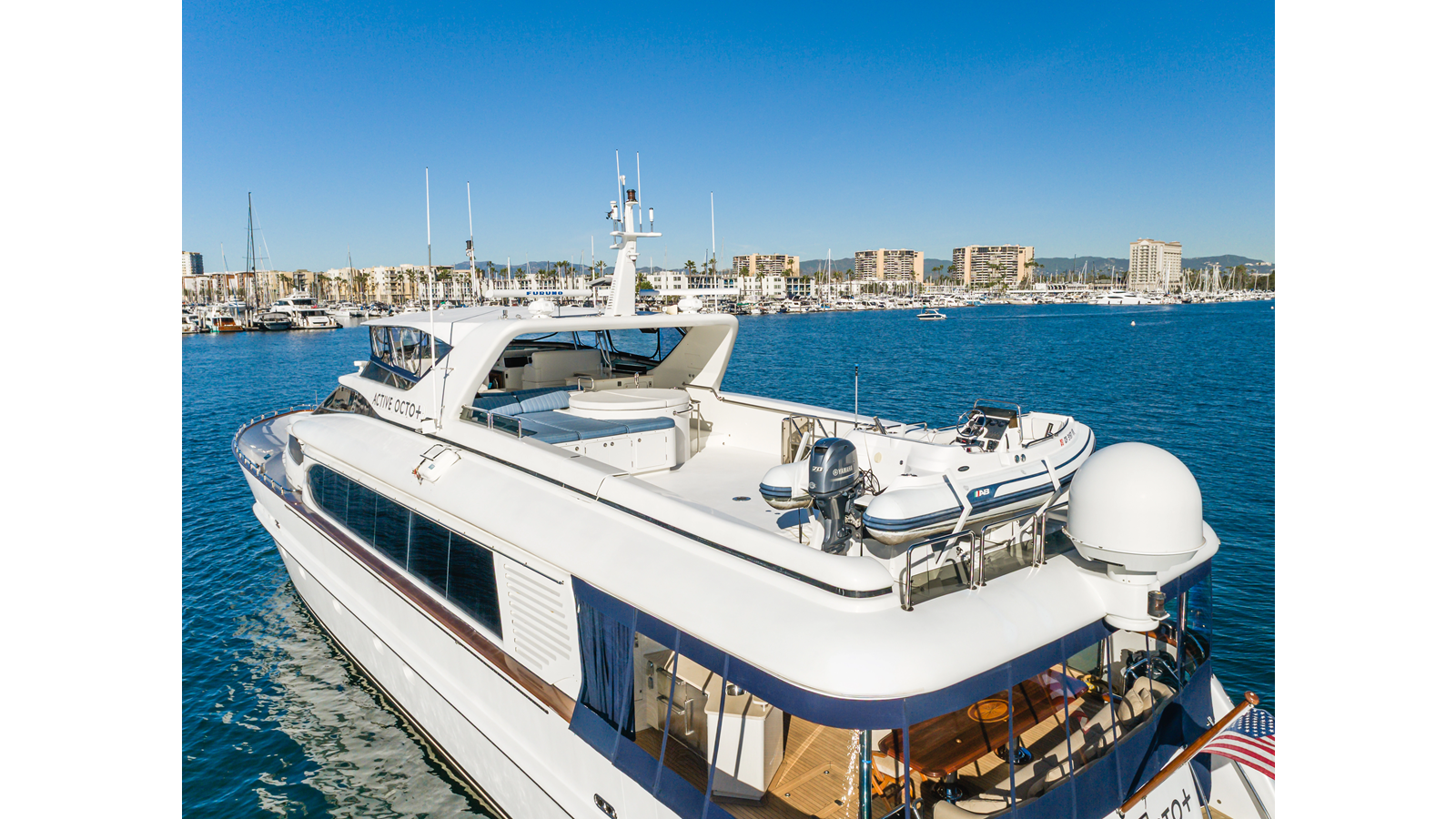 - Comfortable aft deck with dinette seating 8‐10, providing the option for Al Fresco dining