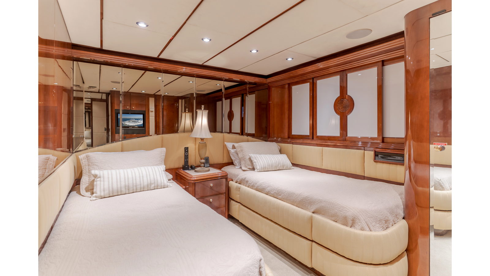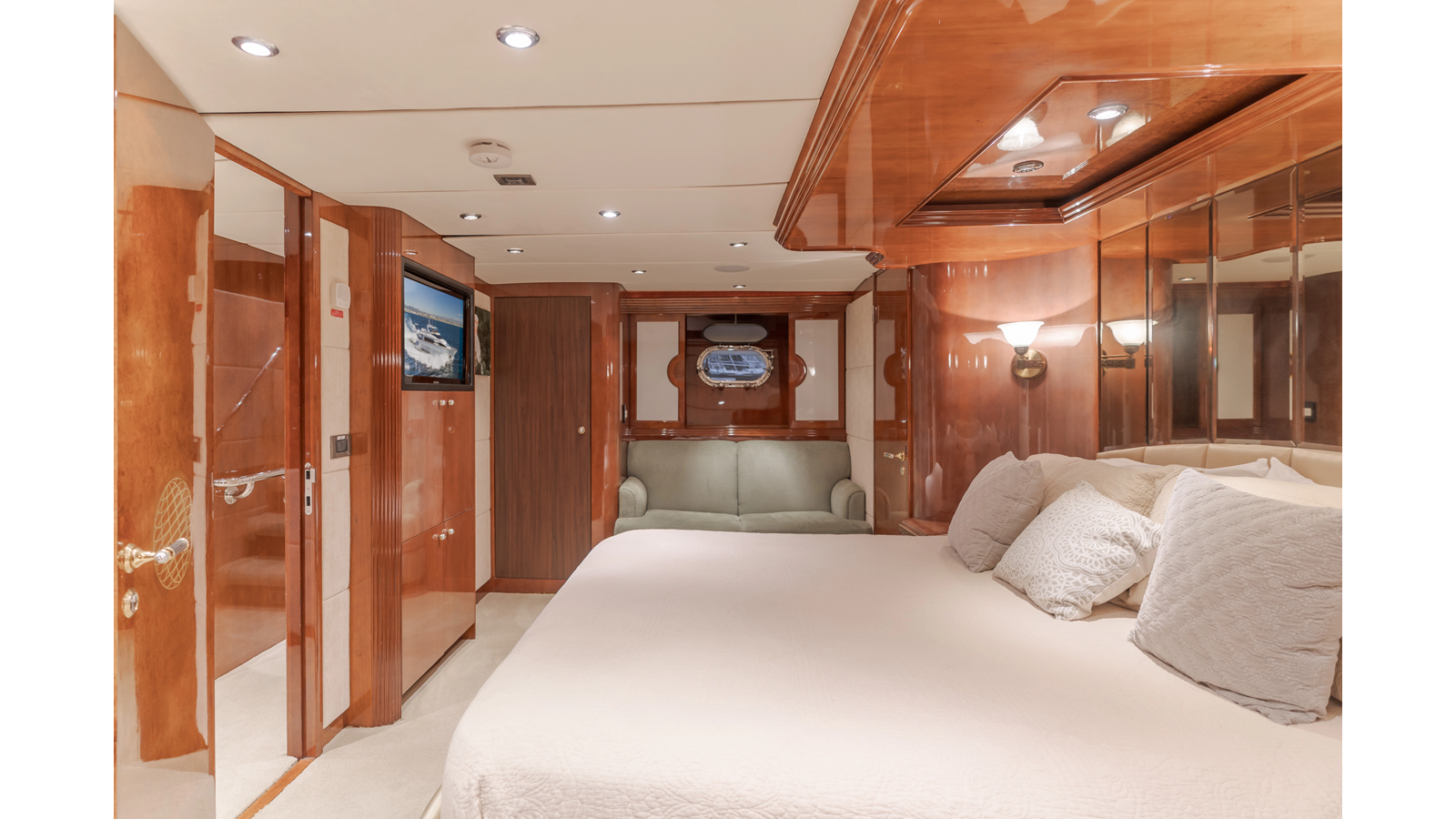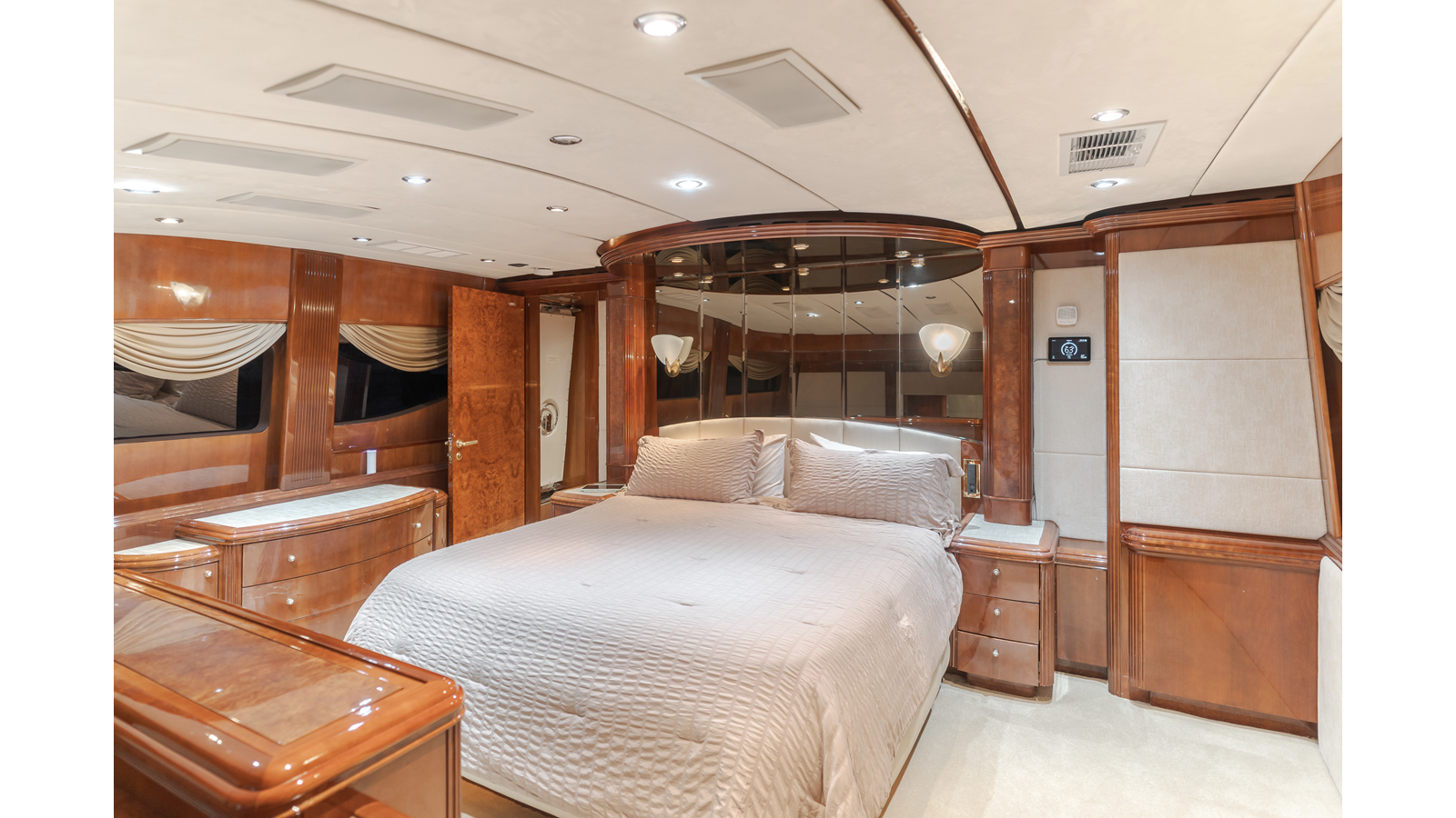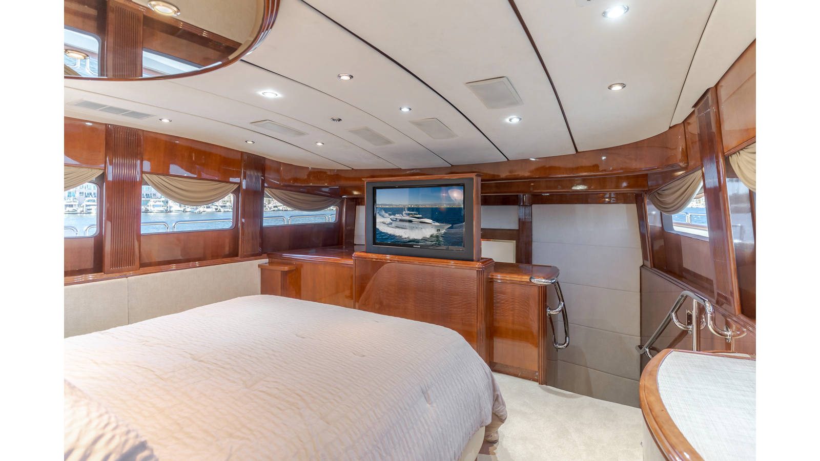 - Bi‐level on‐deck master stateroom that rivals much larger yachts