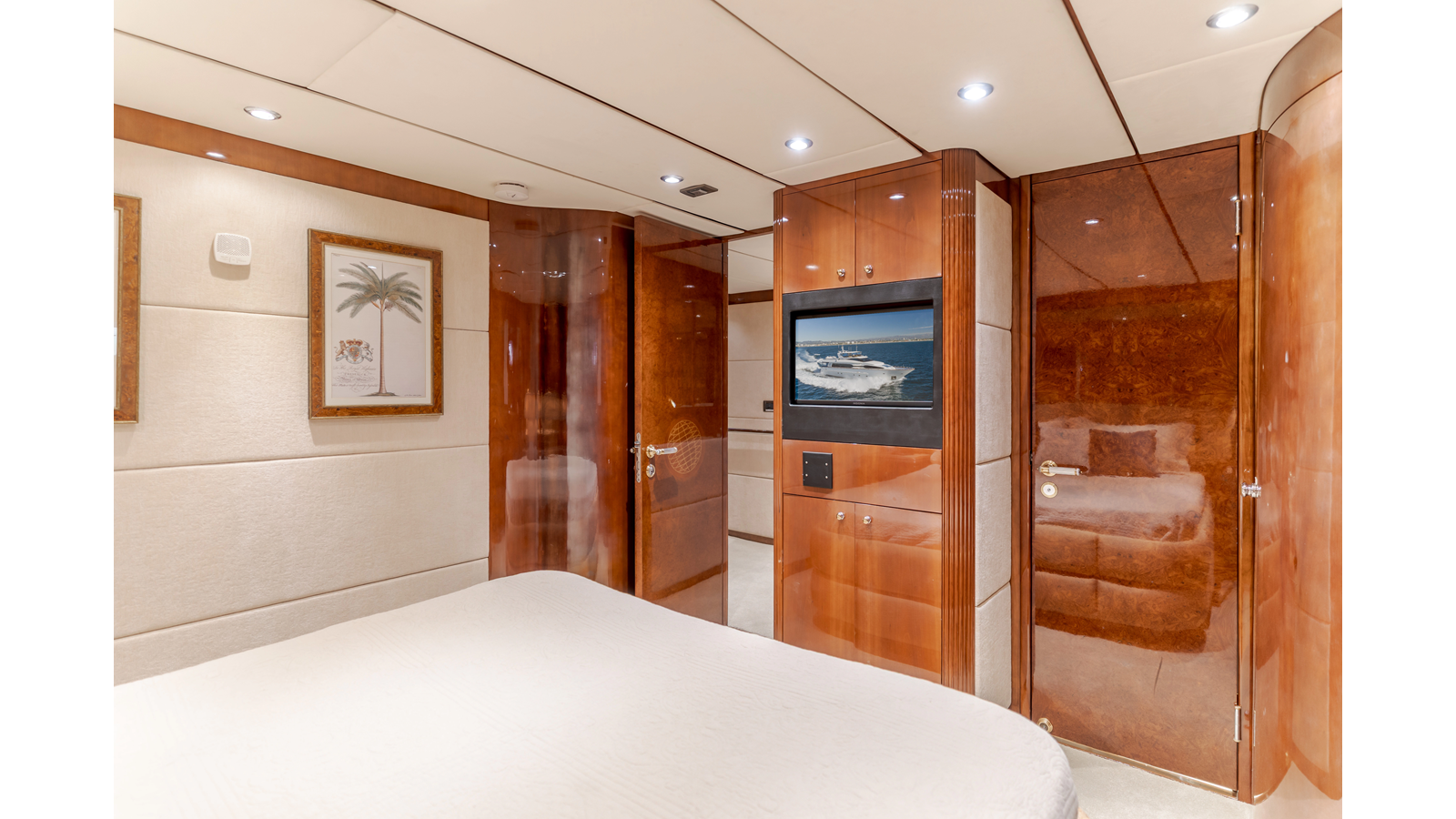 Included with vessel is all wall mounted art work and sculptures in Salon and VIP areas and also a set of dishware in Galley and bedding on display in all Bedrooms.