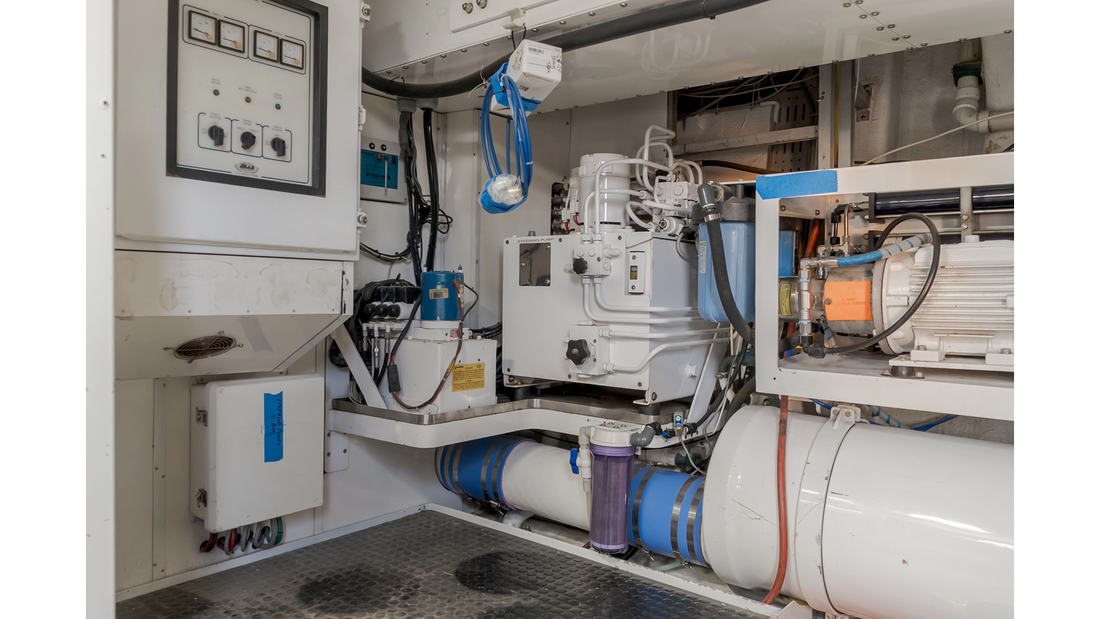 - Bilge Water System: 7.5 hp MP electric pump with 6 bilge suction manifold
