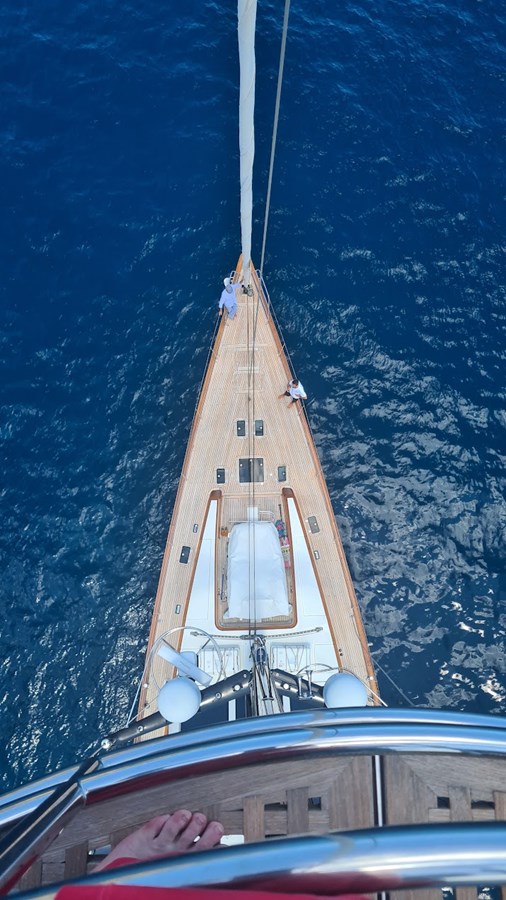 AKALAM’S 60 m² aft deck offers a large, shaded dining and lounging area under a fixed bimini. The foredeck features a tender stowage