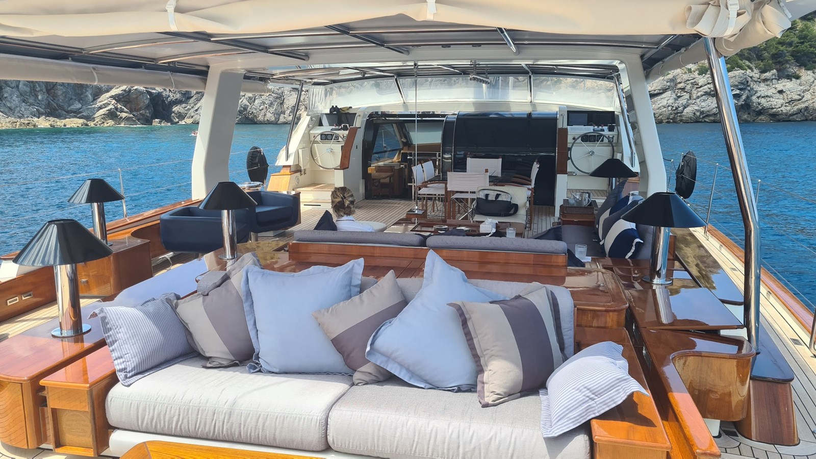 • Massive @60m2 aft deck for outside living, dining and lounging areas. Largely covered by a fixed bimini.