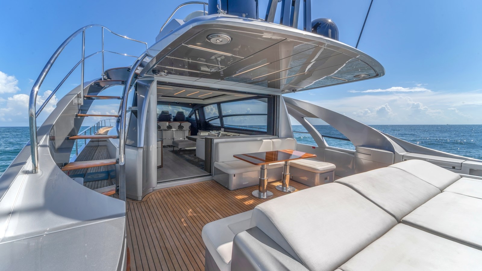 - Full-beam teak hydraulic swim platform and access to tender garage