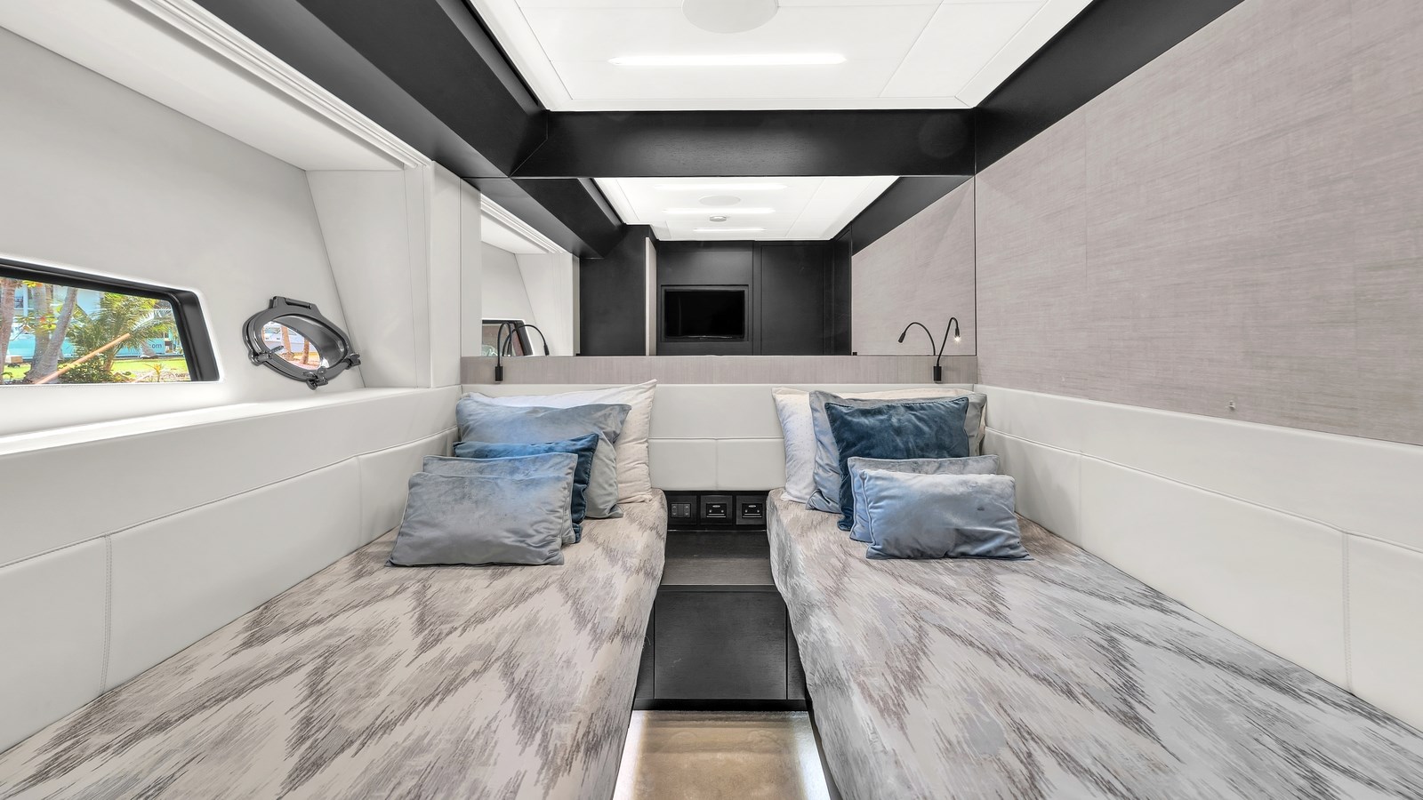 - Master Cabin: 55” LED TV with Apple TV & Blu-ray