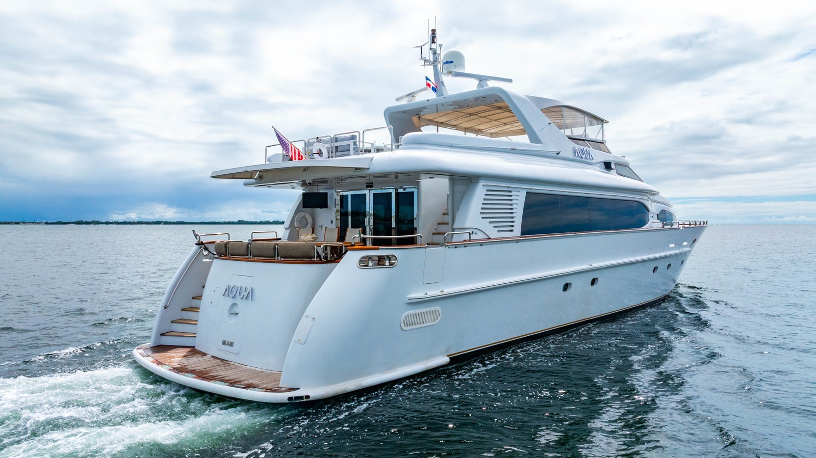 AQUA, 2000 94′ Destiny Raised Pilothouse Motoryacht has been donated to National Save the Sea Turtle Foundation and vessel is available via the assumption of an existing 3-year lease with option to purchase agreement. The lease is non-interest bearing and the terms are highly desirable. The vessel had a major refit in 2019 with a complete new interior, upgraded electronics and A/V equipment. She features a desirable four stateroom layout with On-Deck Master, King VIP below along with Queen and Twin plus crew.