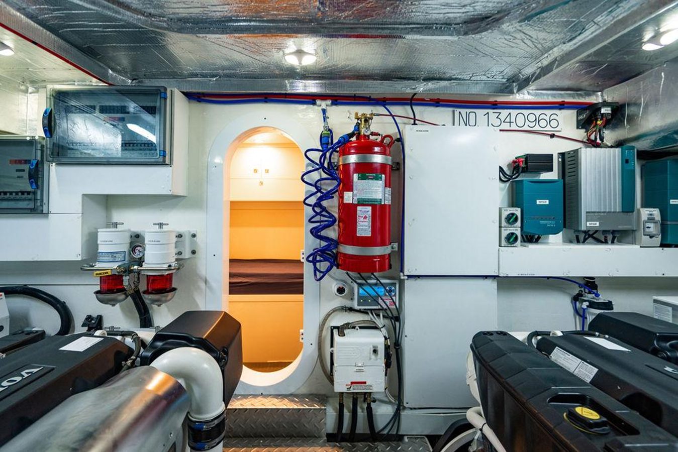 -Fire extinguishers, portable x 4 and integral system to engine room