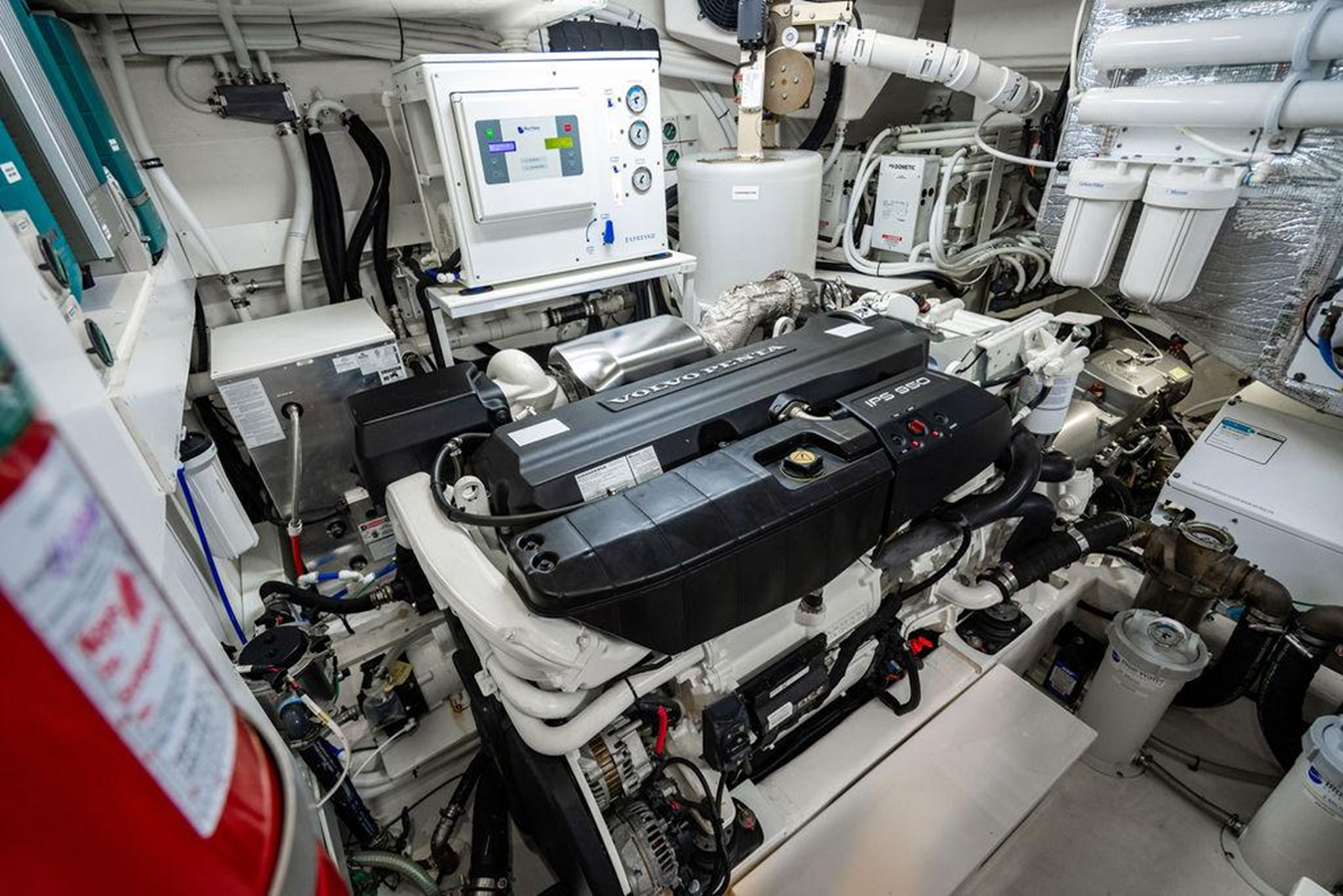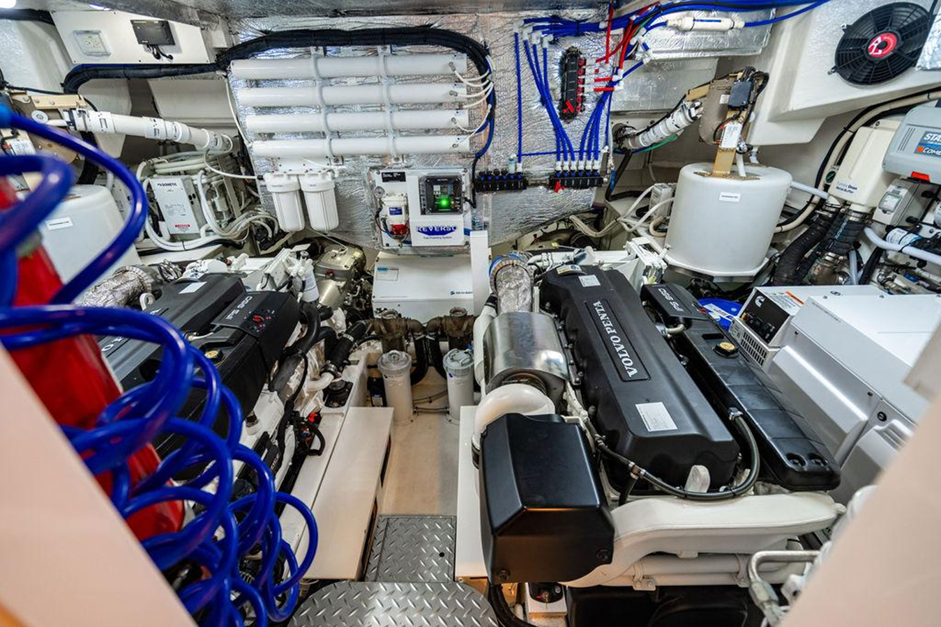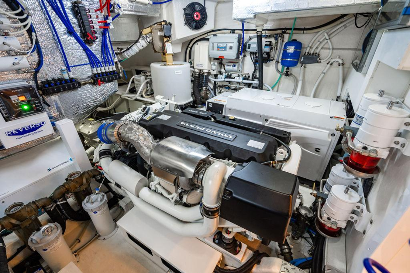 Fully accessorized, there is little to add to this yacht. Bluewater watermaker with full water treatment and purification for clean potable water. Reverso Fuel Polisher. DockMaster Wireless Docking Remote. Extra cameras for towing and anchor watch. ElectroSea sea strainer system for additional growth protection for raw water systems. FLIR camera. There’s not much left to add to this yacht.