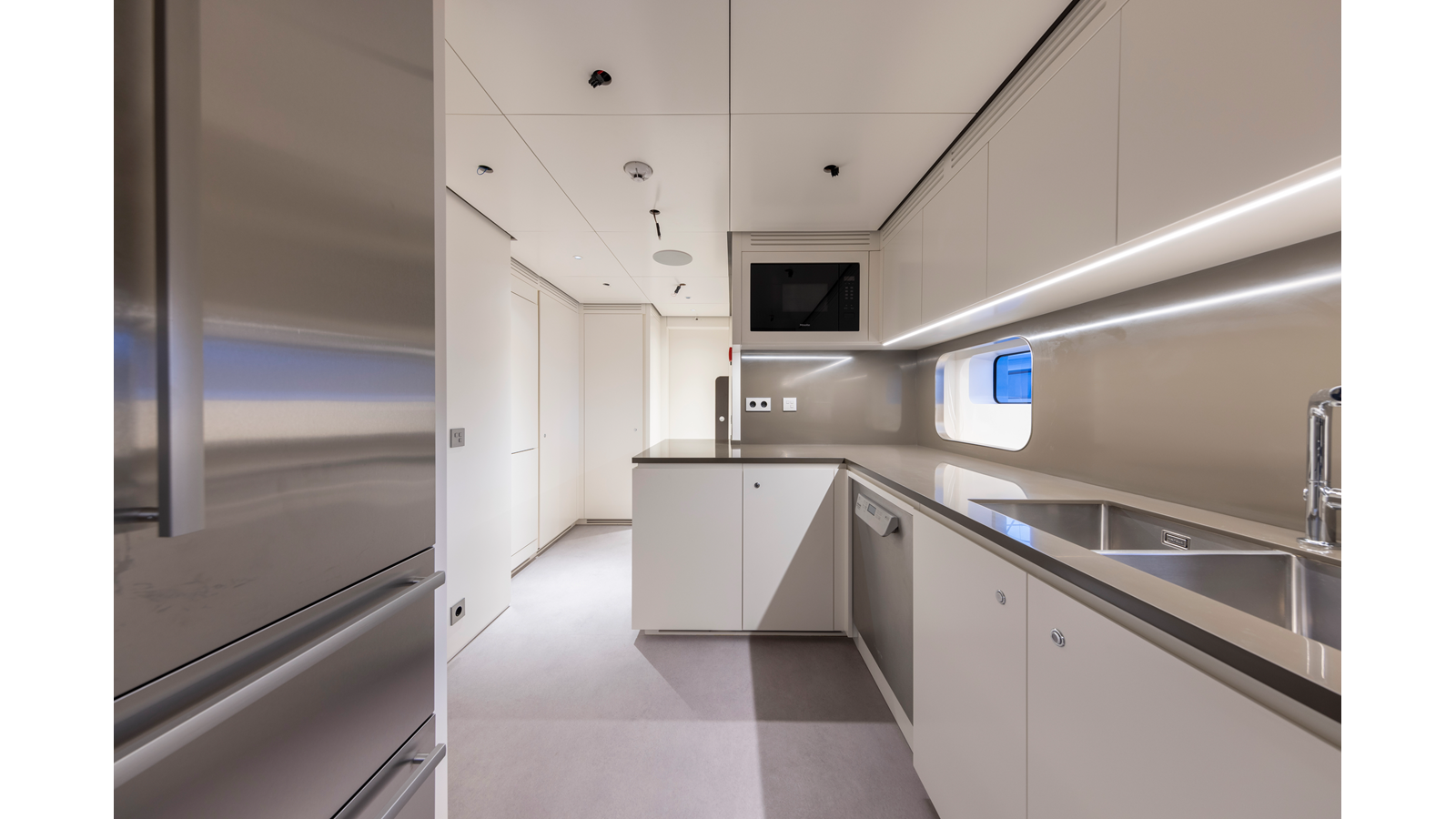 In the galley, meticulous attention is paid to functionality and efficiency. Positioned away from guest areas, it features top-of-the-line equipment, enhancing convenience for onboard culinary operations. The upper deck and sun deck are engineered to provide ample space for guest entertainment and relaxation, equipped with amenities such as a large dining table, a lounge area, a fully equipped bar, and seating arrangements under sun awnings.