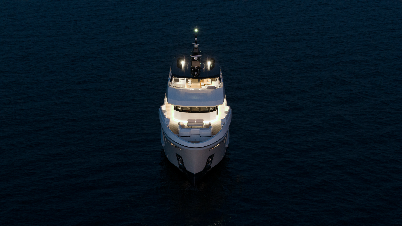 BEE EXPLORER’s exterior design prioritizes functionality alongside aesthetics, ensuring the owner’s comfort and safety alongside light and uninterrupted sea views on board. The main deck aft is carefully structured to facilitate easy movement throughout with free standing furniture engineered to meet any requirement. There is easy access to the water via med-steps to port and starboard and a transformer on the main platform, with the integrated swimming pool looking over the platform.