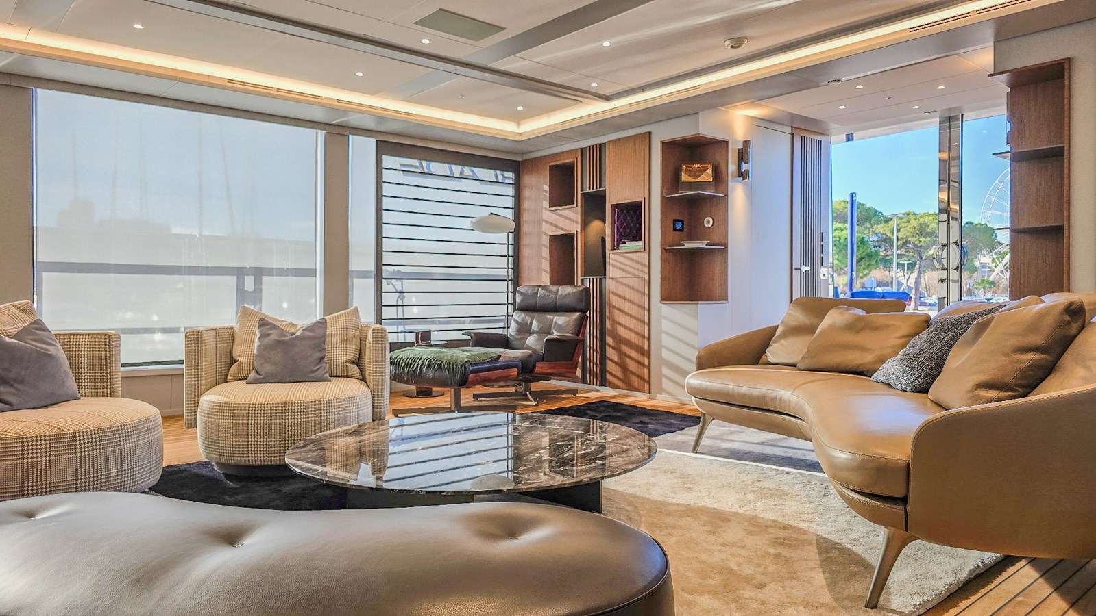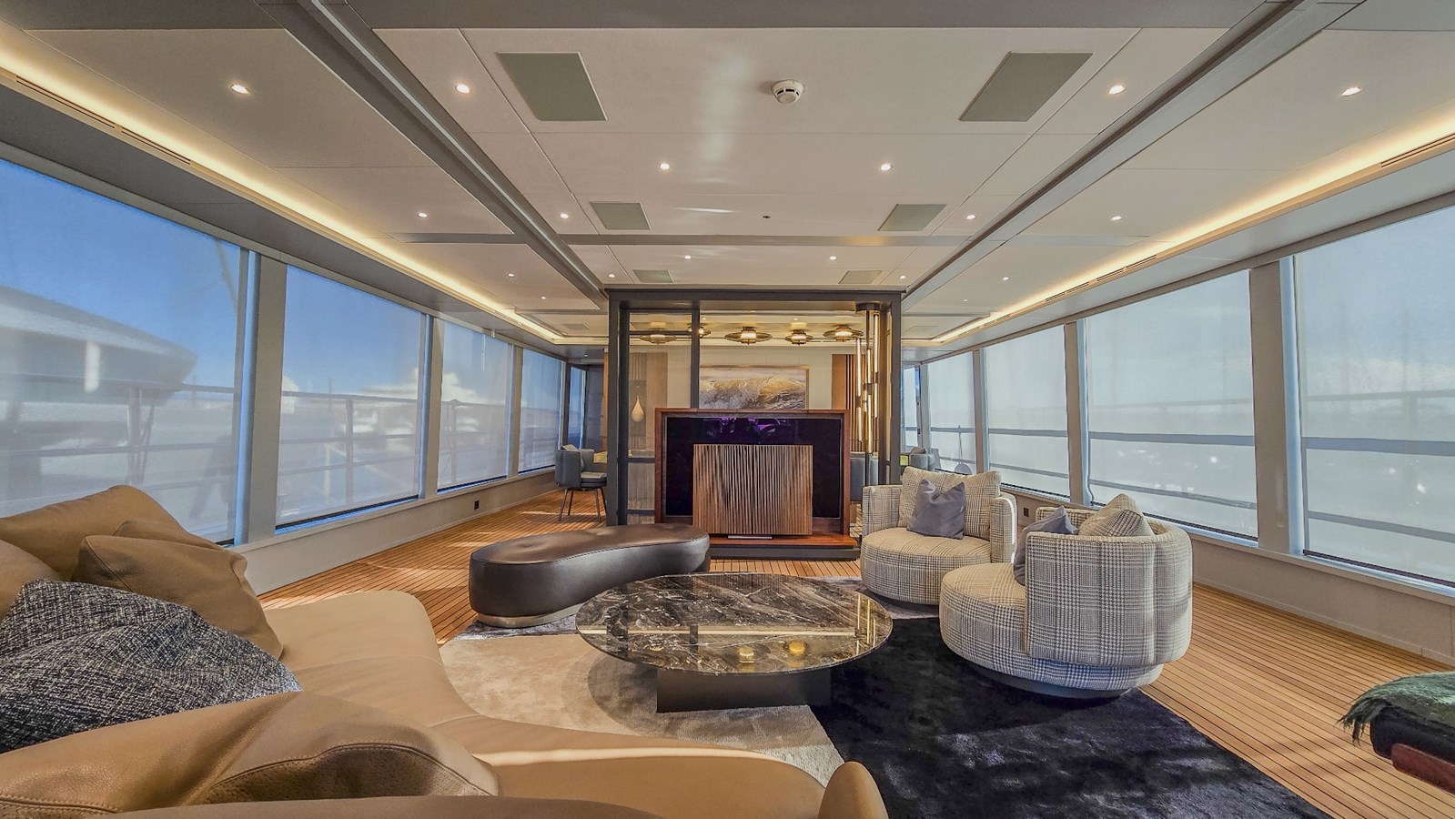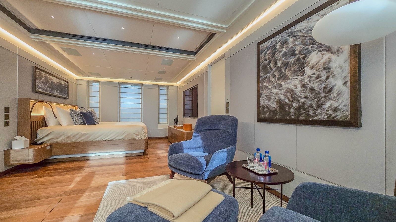 BLADE II sleeps 10 guests across five luxurious en-suite staterooms: one Master suite with oversized windows, three double VIPs, and one twin. The interior was completely redesigned during the refit, in a minimalist, Scandinavian style with 2.2-meter ceilings, featuring open, light-filled spaces. The main saloon offers excellent visibility through floor-to-ceiling unobstructed windows; sundeck was dotted with a new wooden bar, new dining table, and new Paola Lenti furniture. Getting on board and around the main deck is wheelchair friendly.