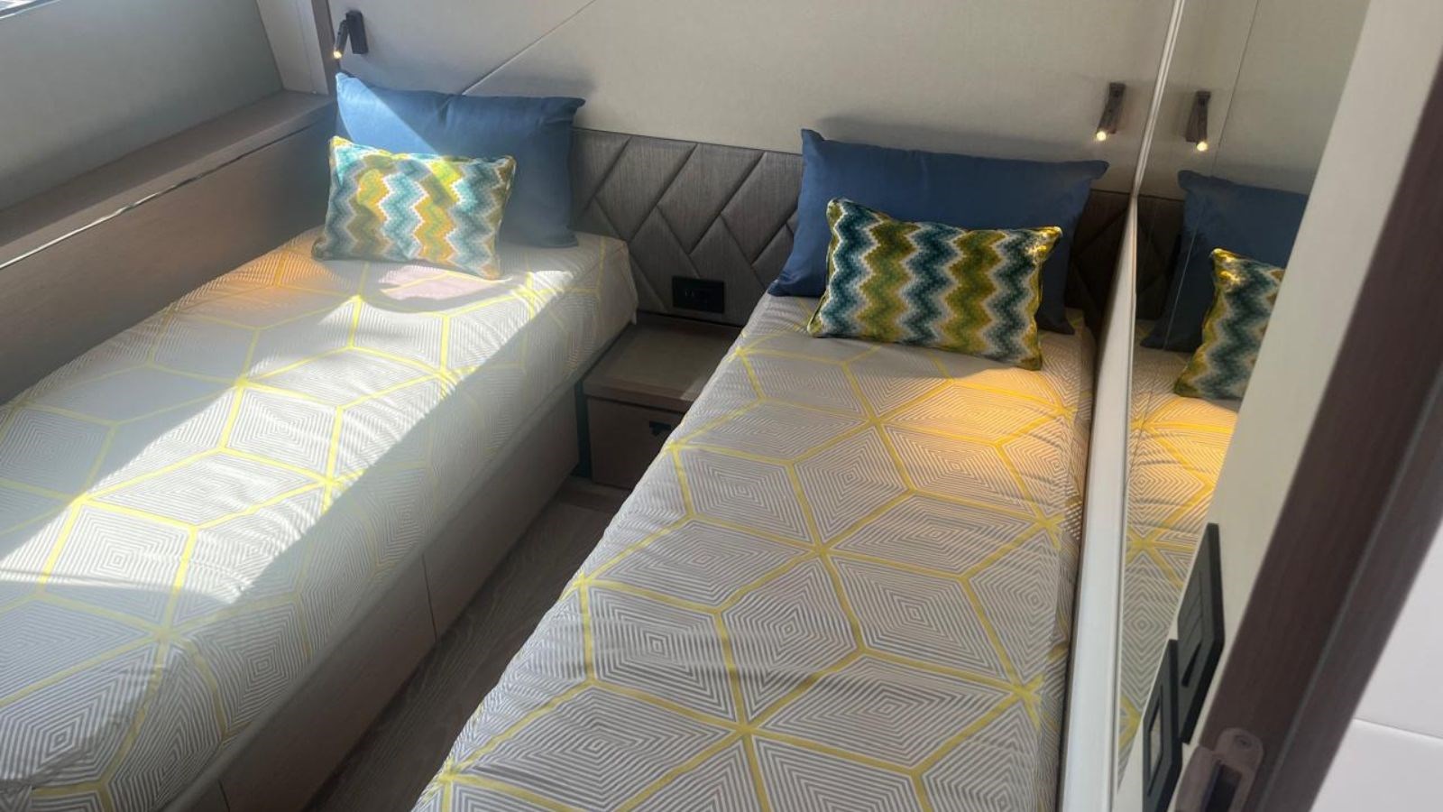 - Master Cabin: Samsung 43″ UHD Smart 4K Television with Apple TV app and Airplay 2 included. Yamaha sound bar.