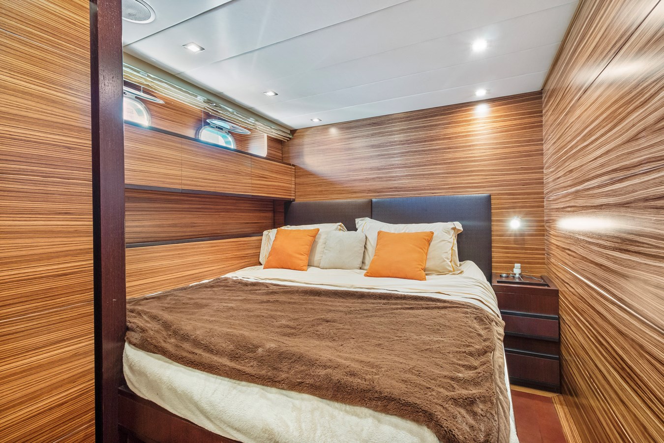 length of 75.4 feet, this yacht boasts a sleek fiberglass hull designed