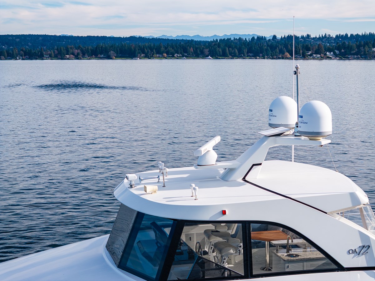 Marine grade aluminum beams. Provides greater rigidity and monolithic structure. Reduces movements and “abrasive” sounds while underway. Also allows for one of the largest uninterrupted glass/window spans in the industry. (Unique OA feature)