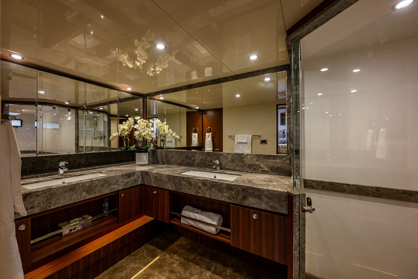 Ocean Alexander employs various techniques to reduce sound and vibration. Focusing on providing a quiet and comfortable yachting environment through various proprietary techniques of controlling sound and noise transmission. Some of these techniques include, multiple insulation barriers including reflective materials, absorptive materials,dampening materials, air pockets and flexible and isolation mounts. Ultimately resulting in vibration/sounds levels that are industry leading and at times 1/2 to 1/10 of ISO-6954 requirements (Unique OA feature)