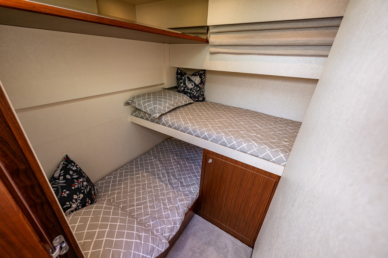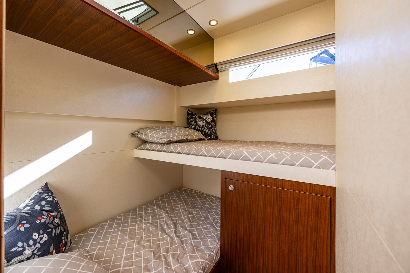 Flip berth for single berth for additional storage space. When flipped up, provides 6’x6’x3’ full height storage space