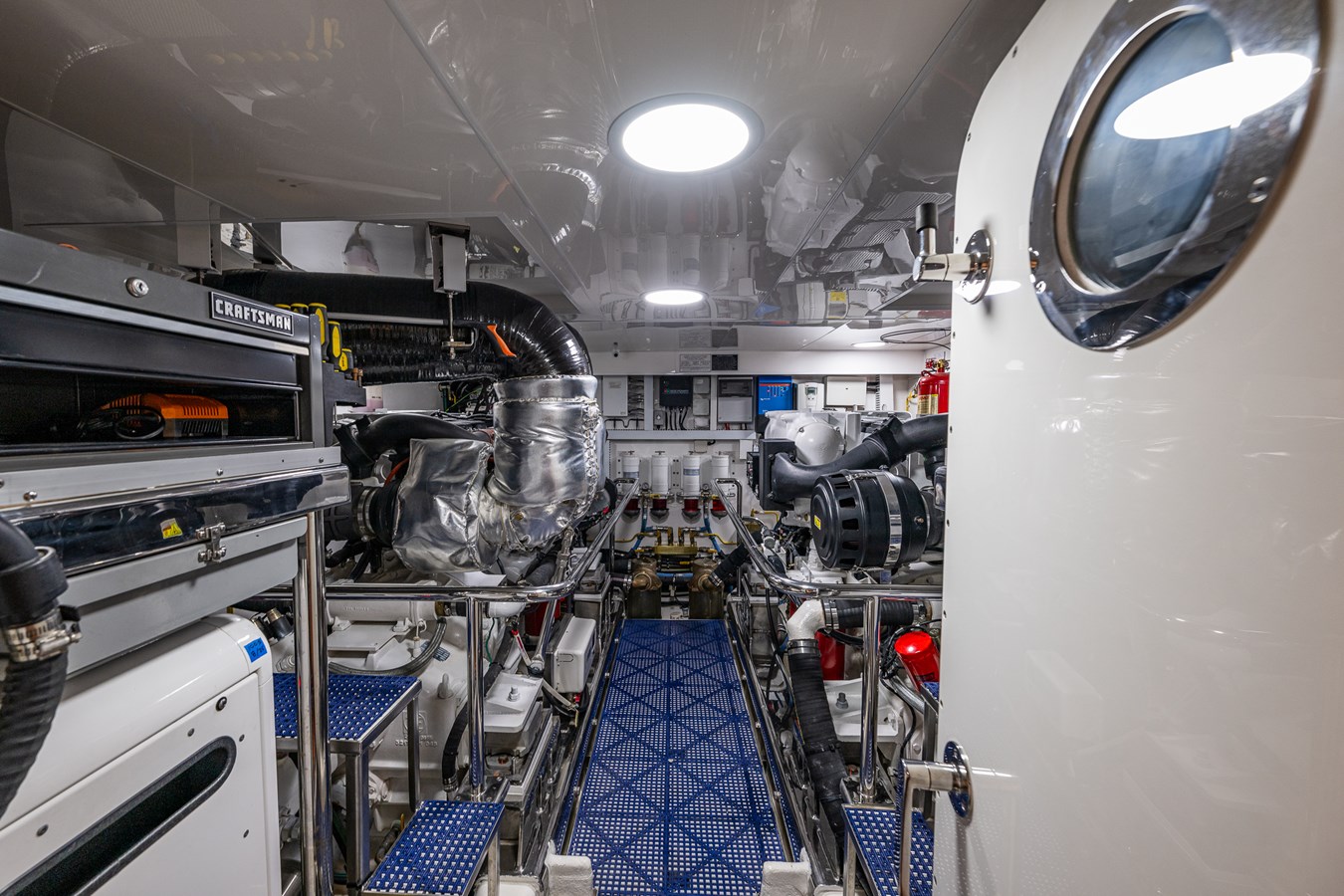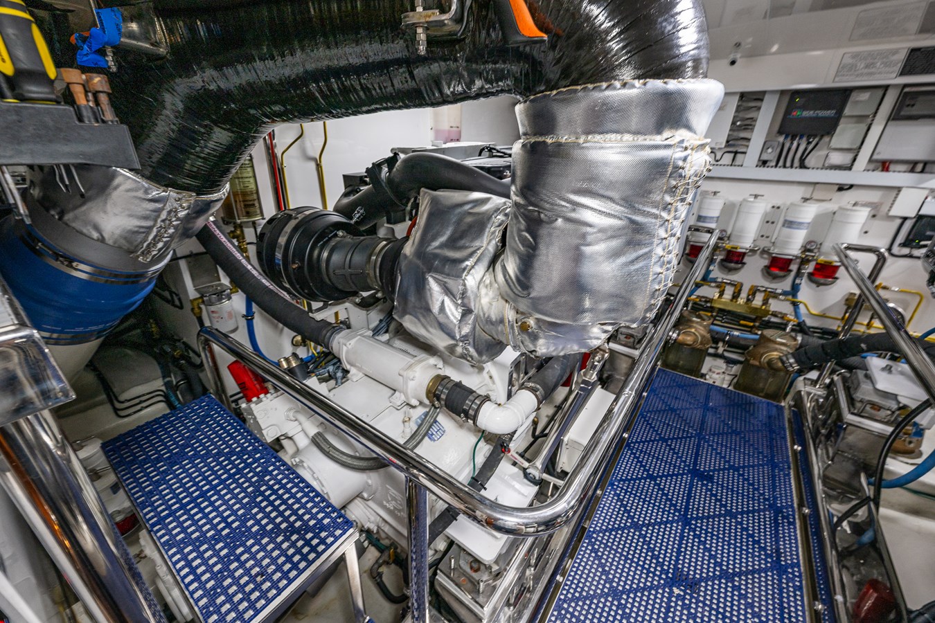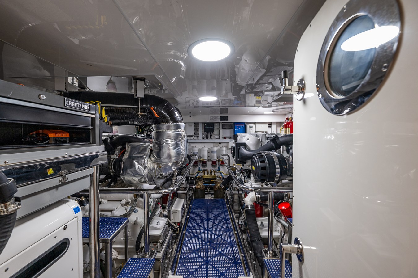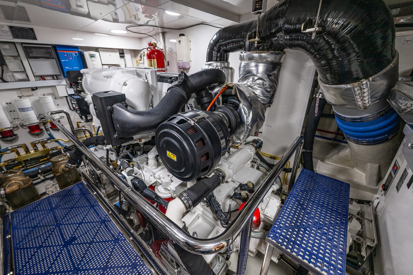 Ocean Alexander proprietary “dry bilge ventilation system” with dedicated bilge exhaust to outside. This provides constant airflow to keep the bilges dry and mildew free. Any moisture from condensation is evacuated outside the yacht to keep a clean and healthy cruising environment. (Unique OA Feature)