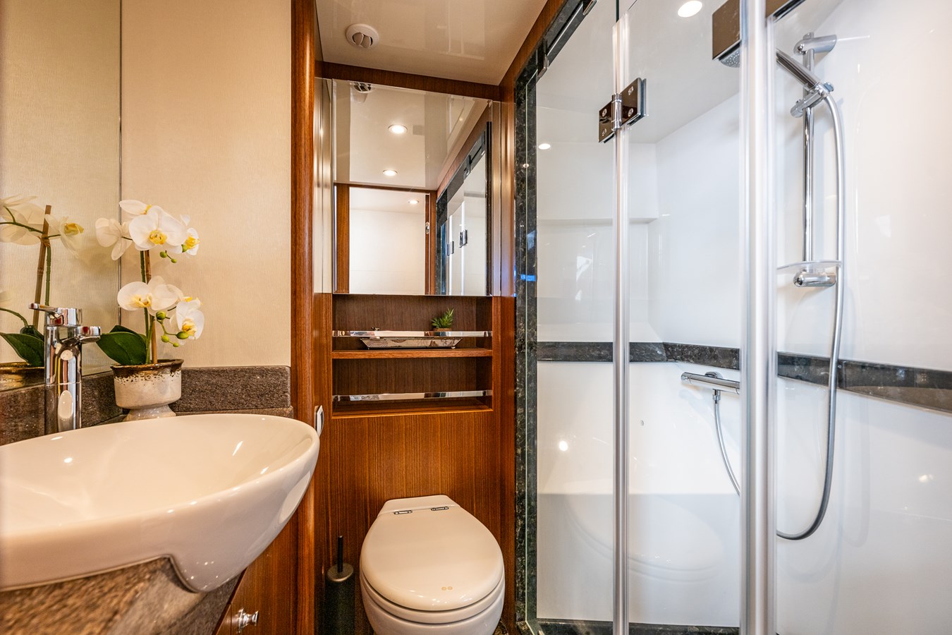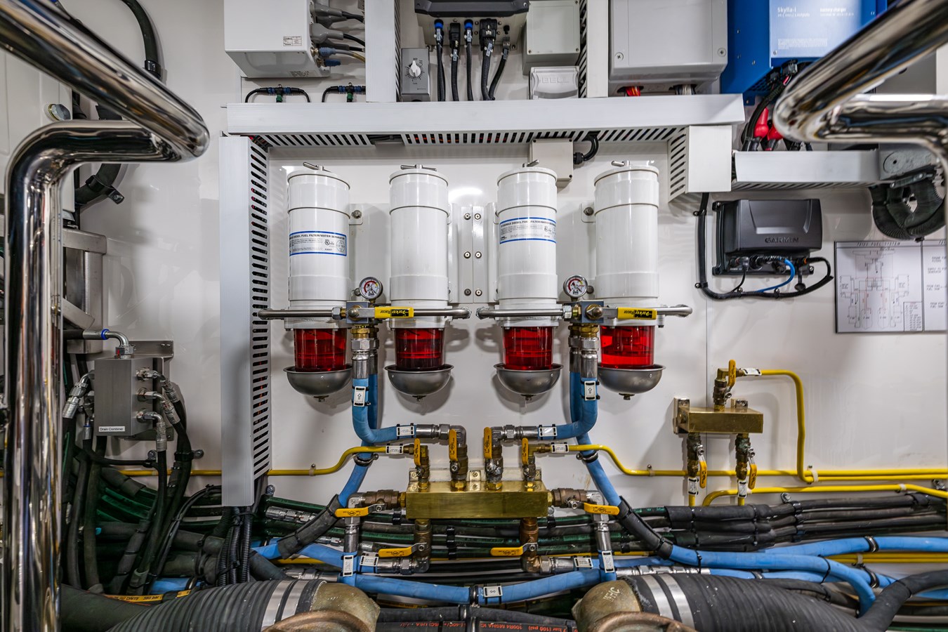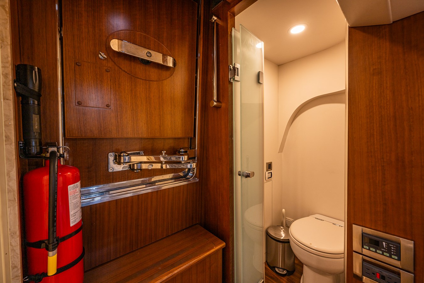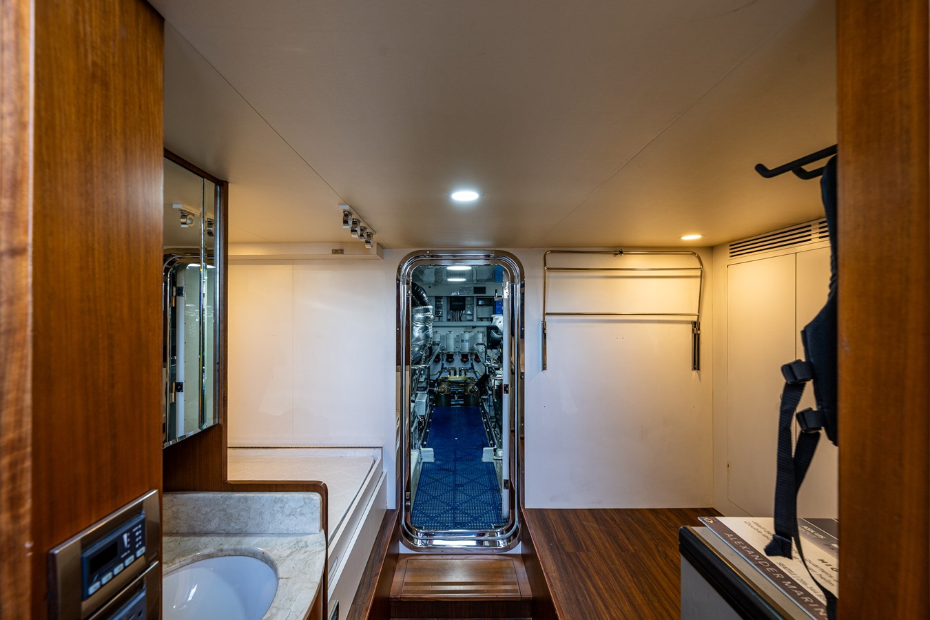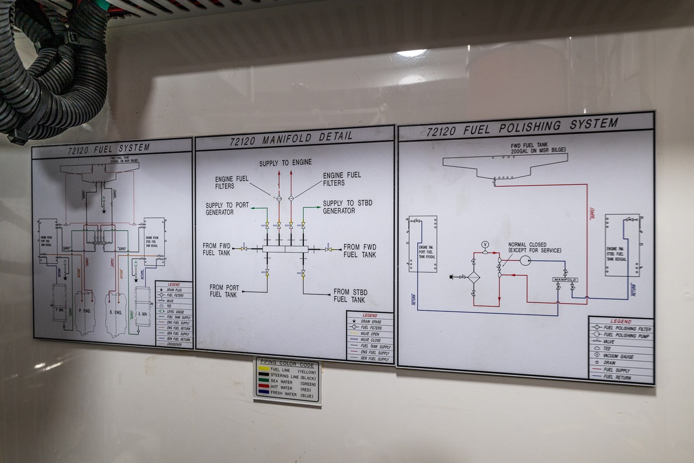 Ocean Alexander proprietary “dry bilge ventilation system” with dedicated bilge exhaust to outside. This provides constant airflow to keep the bilges dry and mildew free. Any moisture from condensation is evacuated outside the yacht to keep a clean and healthy cruising environment. (Unique OA Feature)