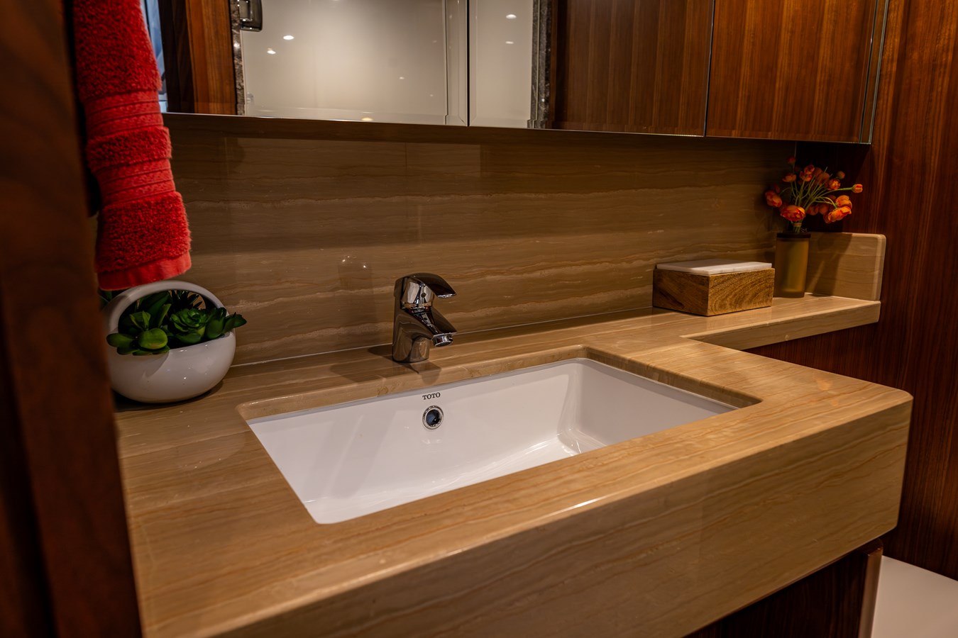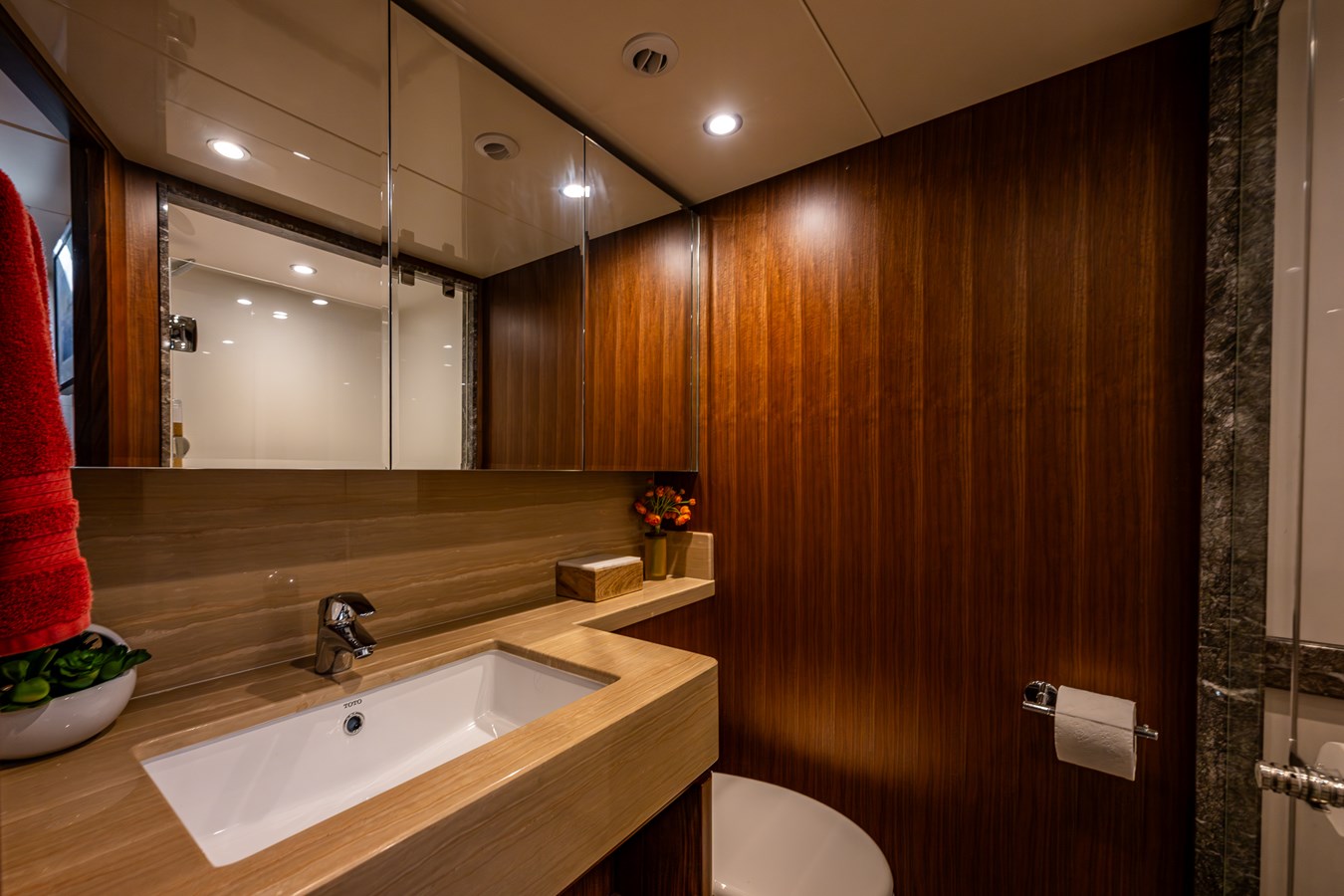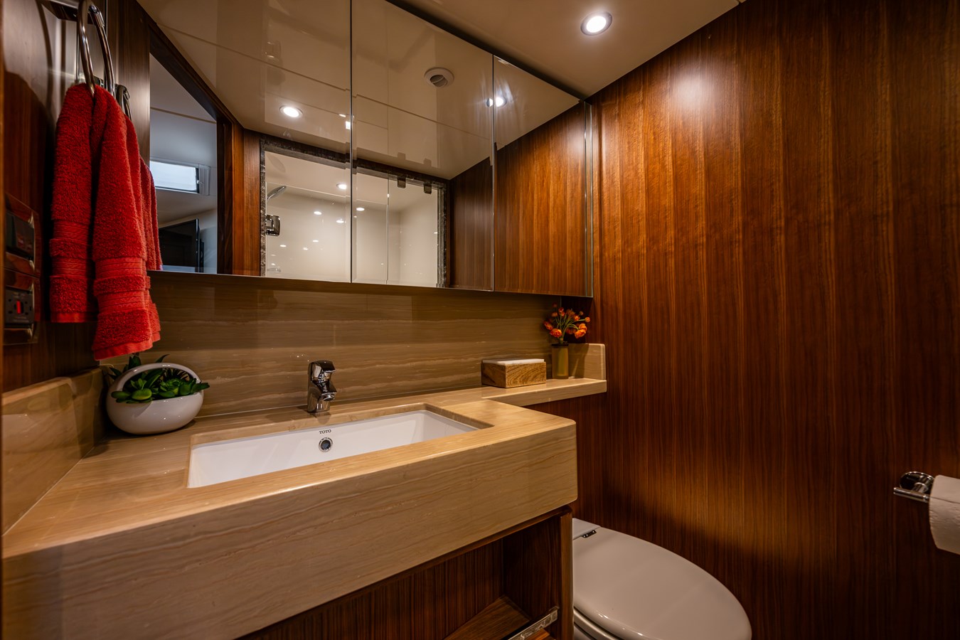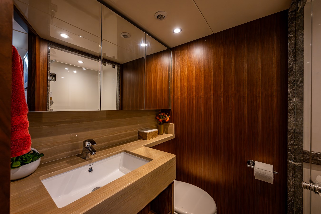 Ocean Alexander proprietary “dry bilge ventilation system” with dedicated bilge exhaust to outside. This provides constant airflow to keep the bilges dry and mildew free. Any moisture from condensation is evacuated outside the yacht to keep a clean and healthy cruising environment. (Unique OA Feature)