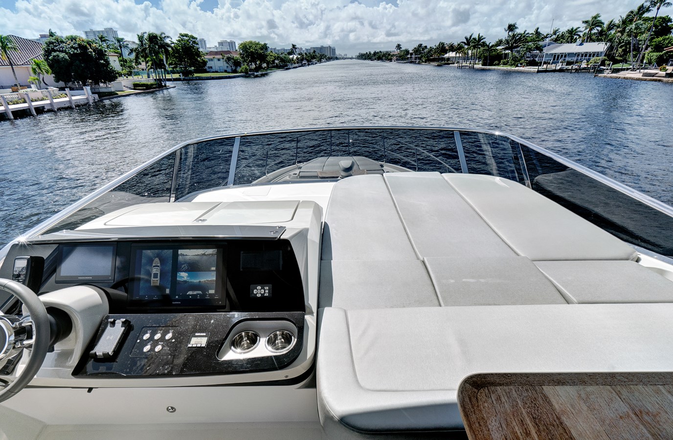The main helm station, in direct contact with the saloon, is in a position that ensures optimum visibility, and it features advanced infotronics and comprehensive on-screen monitoring of all on-board systems. A door is conveniently placed for rapid transit from the main helm station to the lateral walkway, facilitating harbour manoeuvres.