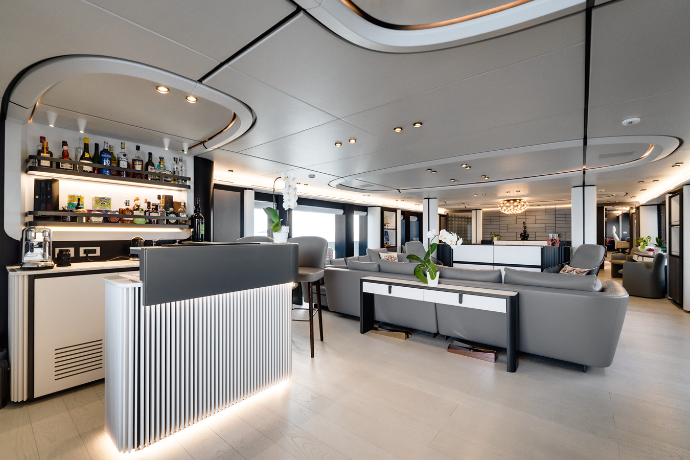 • Main deck with main saloon, bar, formal dining room, day WC and fully