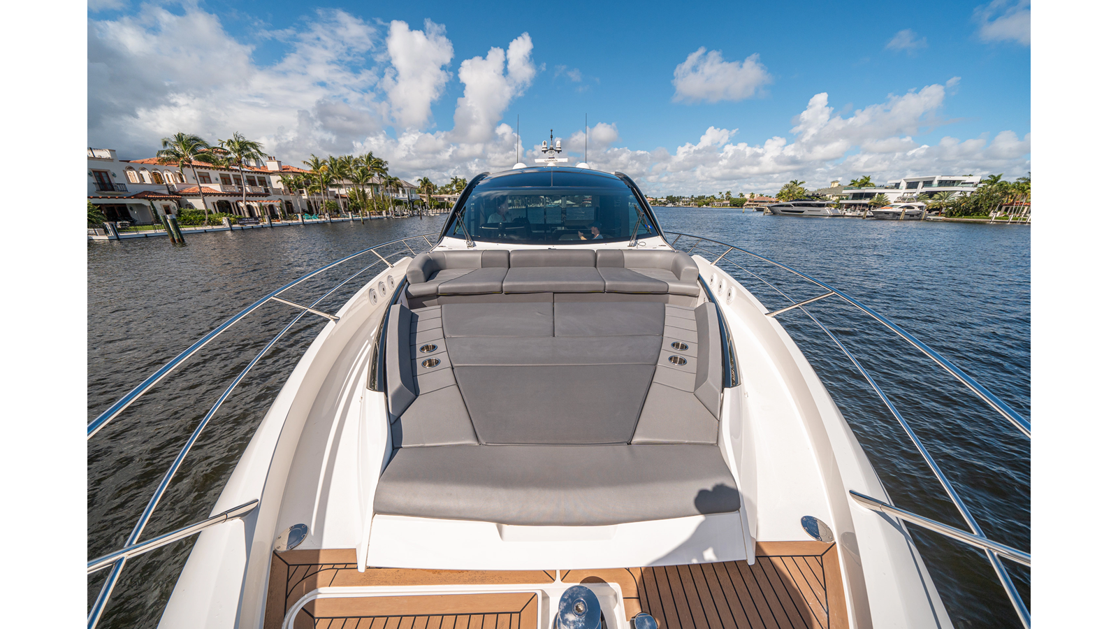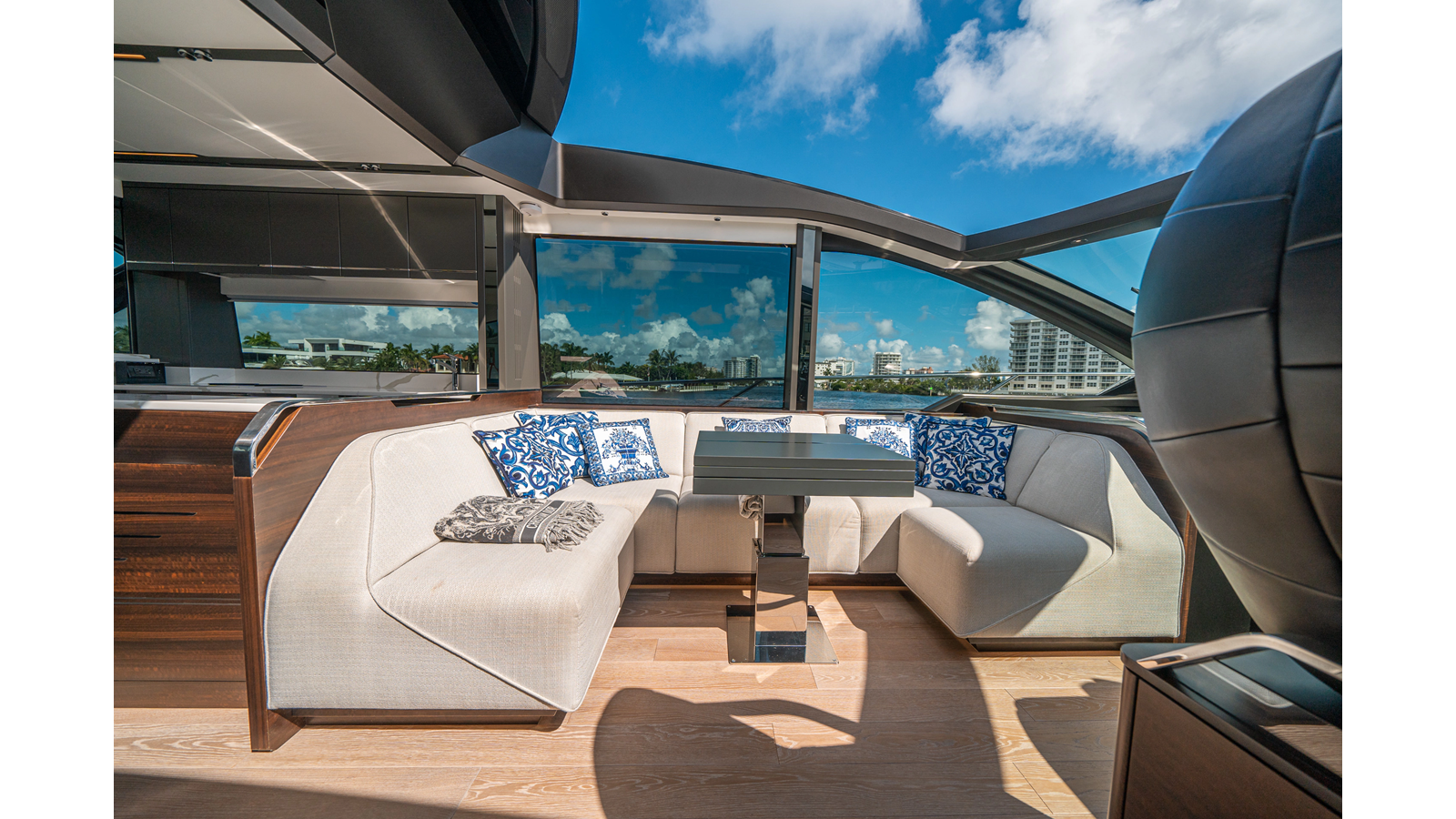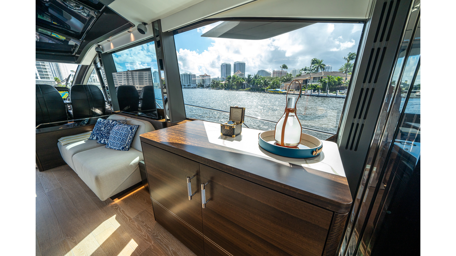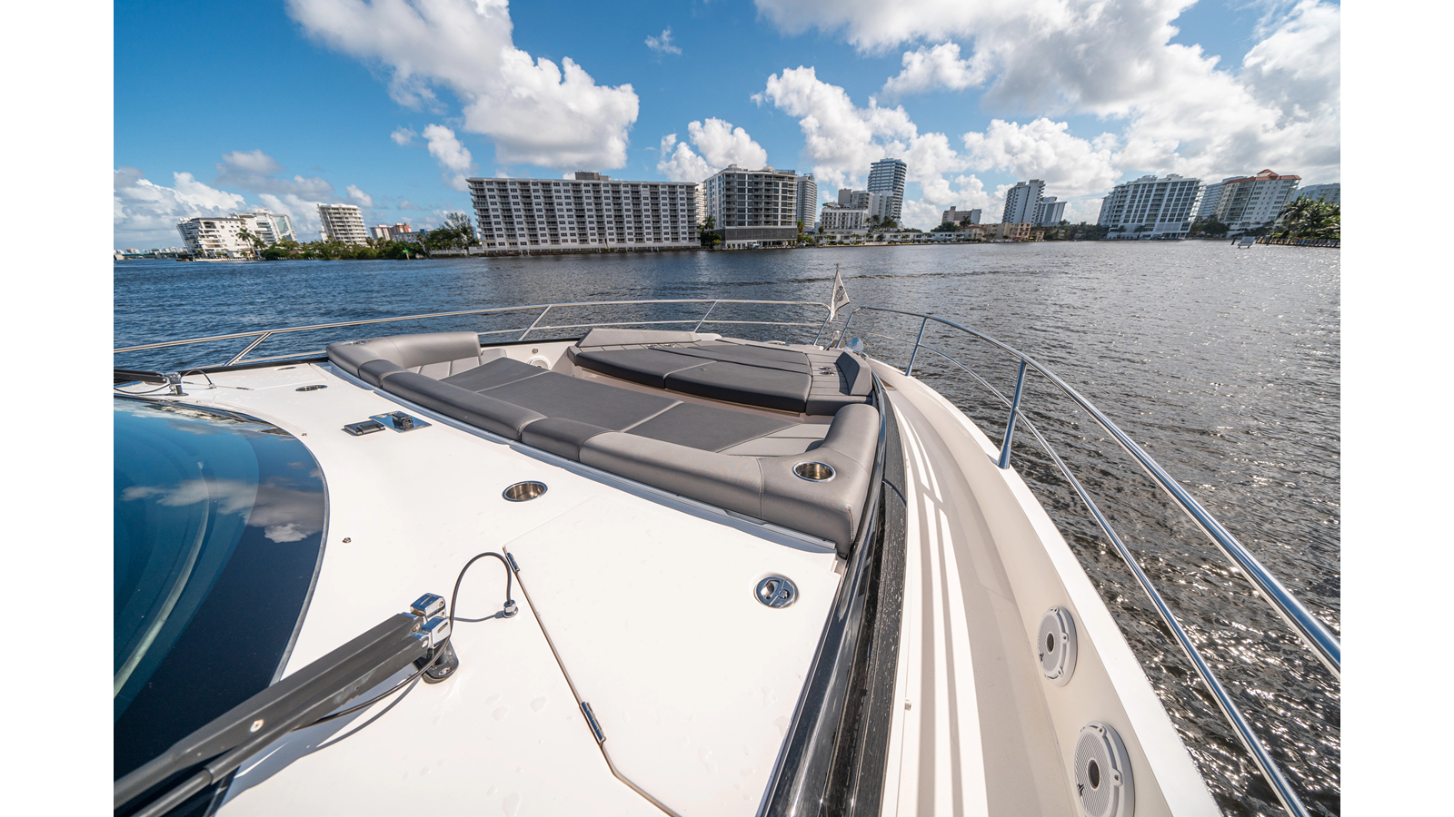- Upgraded audio system featuring 16 JL Audio M6 speakers throughout bow, stern, and salon, powered by high-output amplifiers