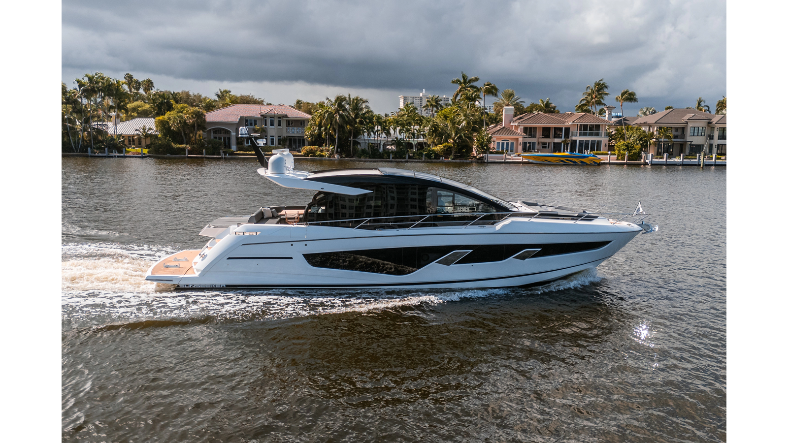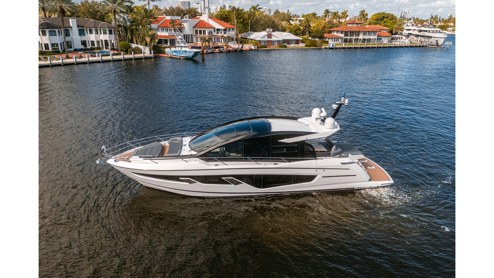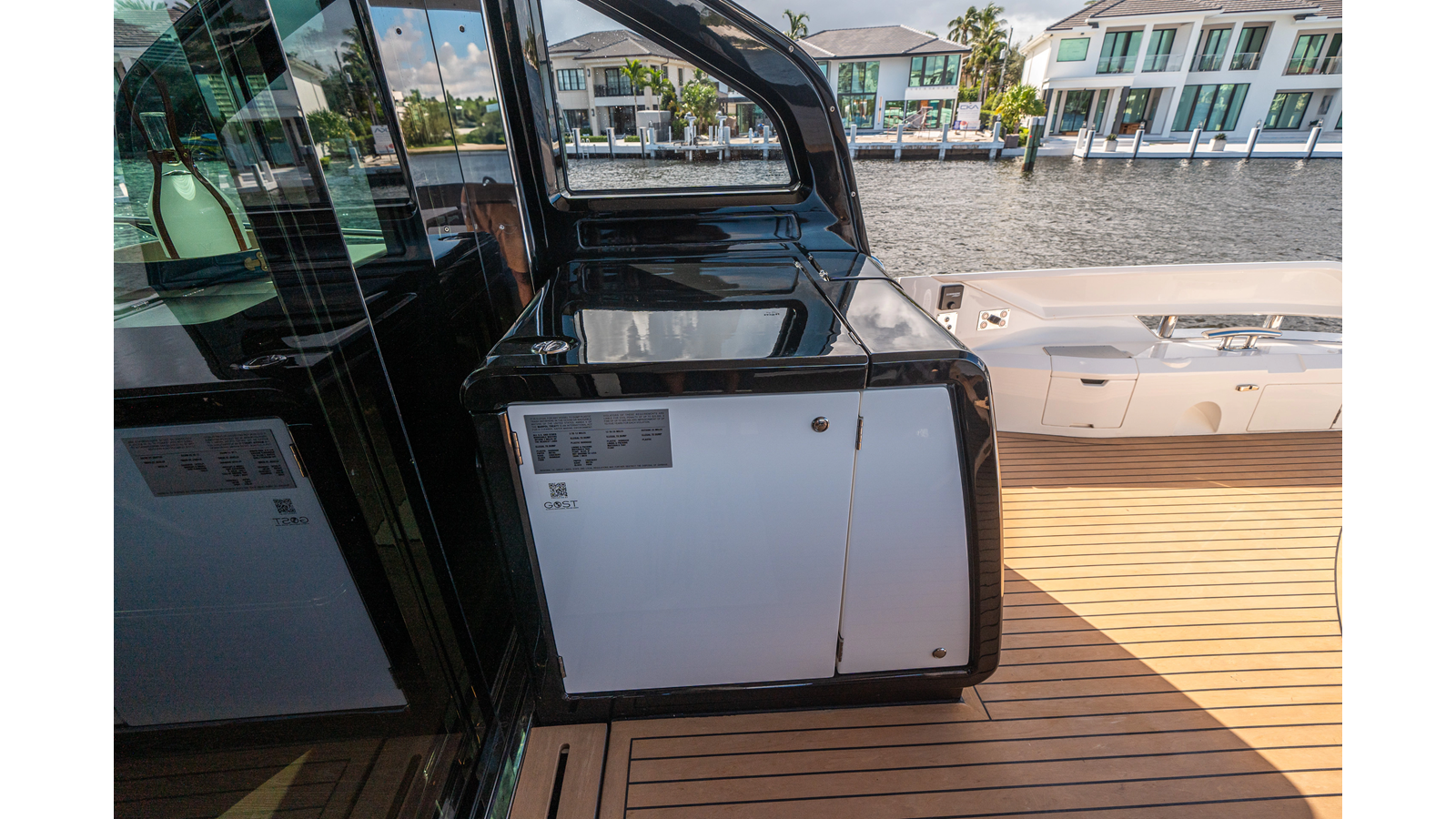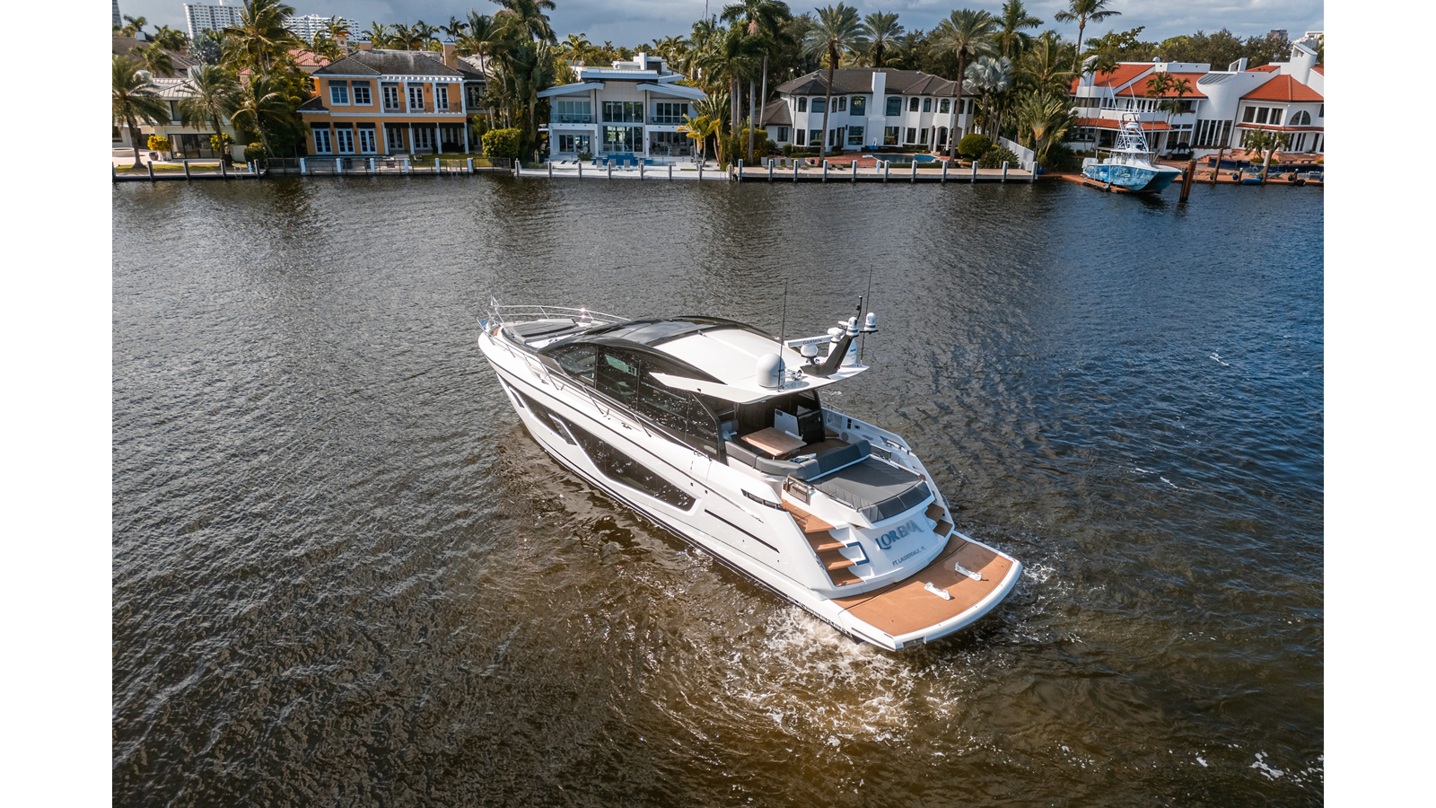 - Upgraded audio system featuring 16 JL Audio M6 speakers throughout bow, stern, and salon, powered by high-output amplifiers