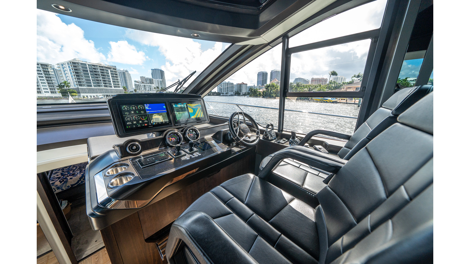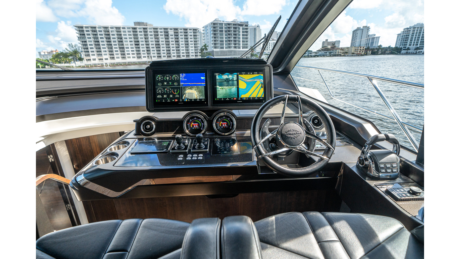 - Custom carbon-fiber dashboard with dual joystick FLIR controls, additional Garmin 743 display, and complete electronics integration