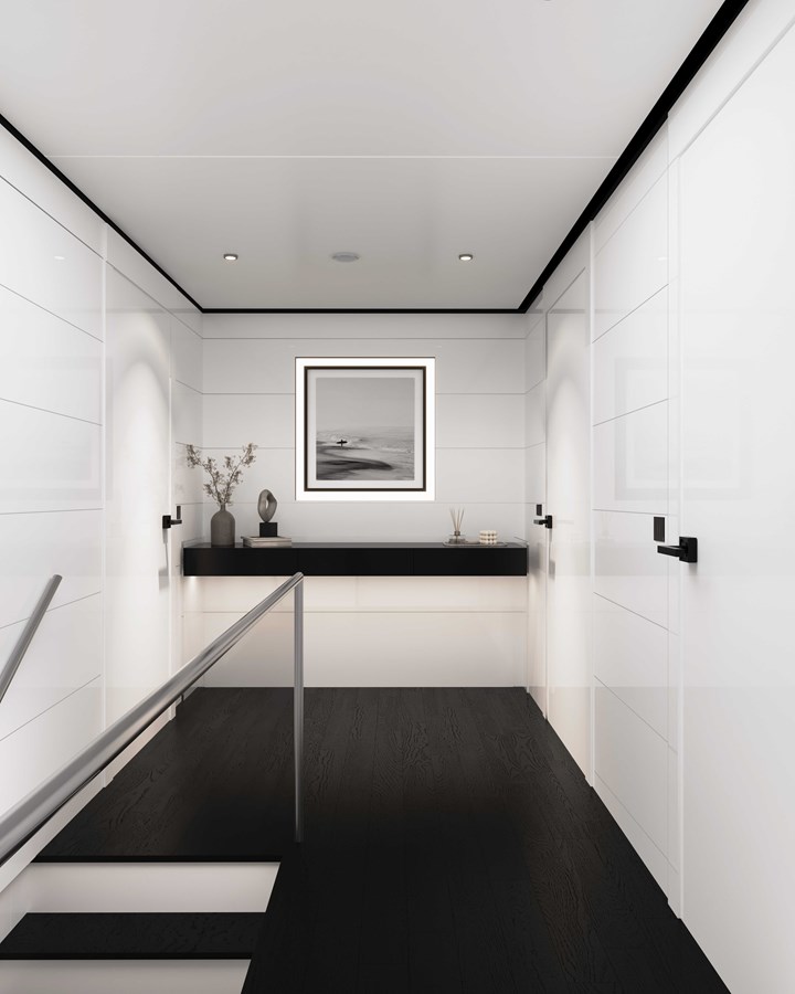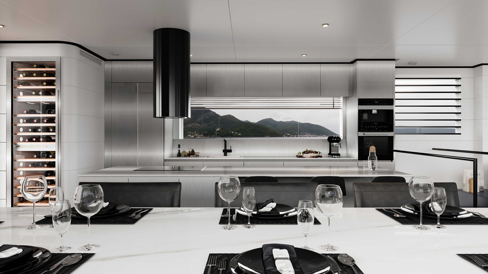 Collaboration The Mako Shark is the product of a distinguished collaboration between renowned designer Rıza Tansu and the accomplished shipbuilders at Tufan and Brothers Yachting Company. This partnership fuses avant-garde aesthetic sensibility with technical mastery, resulting in a vessel that seamlessly marries visual impact with exceptional build quality and performance standards. Exterior Design The Mako Shark showcases a bold, military-inspired exterior defined by angular lines and a commanding silhouette—hallmarks of Rıza Tansu’s iconic and serial award winning design language. Its assertive presence is both purposeful and visually arresting, reflecting the yacht’s expedition-ready ethos. Interior Layout The interior of the Mako Shark is conceived to balance refined luxury with functionality. Expansive living areas, meticulously crafted furnishings, and a thoughtfully considered layout create an ambiance of understated elegance and comfort, ideal for extended cruising. Performance The Mako Shark is engineered for transoceanic range and operational versatility. Her design emphasizes stability, endurance, and efficiency, making her exceptionally capable in diverse sea conditions. Her redundant systems allow her owners peace of mind while exploring the farthest corners of the oceans. Inspiration and Concept Rooted in the core principles of expedition, elegance, and purpose-driven design, the Mako Shark draws inspiration from its namesake—the agile and powerful mako shark. This concept is expressed through a sleek, muscular form and a naval architecture that prioritizes strength, adaptability, and precision handling across a variety of marine environments. GENERAL INFORMATION Yacht Name: MAKO SHARK Builder: Tufan and Brothers Designer / Interior Concept: Rıza Tansu Type: Explorer Yacht Naval Architecture & Engineering: Tufan and Brothers Project Management: Tufan and Brothers DIMENSIONS Length Overall (LOA): 26.5 m Waterline Length (LWL): 23.3 m Beam: 7.63 m Draft: 1.8 m Gross Tonnage (GRT): 200 Full Load Displacement: 145 tonnes CAPACITY Guests: 10 Crew: 4–5 Fuel Capacity: 22,500 liters Fresh Water: 2,500 liters Black / Grey Water: 2,000 liters each Range: 3,000 nm @ 9 knots 4,500 nm @ 8 knots PERFORMANCE Cruising Speed: 10 knots Max Speed (1/4 Load): 13 knots PROPULSION Engines: 2 x CUMMINS X15, 630 HP Gearboxes: ZF 1:3.000 Propellers: 2 x 1100 mm 5-blade, Ni.Al.Br Bow Thruster: Side Power SH550 Stabilizers: Humphree Zero Speed Fins Steering: Electro-Hydraulic STRUCTURE Hull Material: Marine Grade Steel Superstructure: Marine Grade Aluminium Hull Type: Full Displacement ELECTRICAL & POWER SYSTEM Generators: 2 x KOHLER 28 kW Battery System: 12 x Mastervolt Lithium-Ion (66 kW) Inverter/Chargers: 6 x Mastervolt Combi Pro 24/3500-100 Shore Power Transformer: 30 kVa COMFORT & INTERIOR Stabilization: Zero-speed fins & rockwool insulation Air Conditioning: CRUISAIR – 2 x 72,000 BTU units with multiple fan coils Watermaker: 1 x Horizon Seafari 225 Jacuzzi Pump: TF TC25/1 SAFETY & FIRE SYSTEMS Fire Suppression: FM200 system in engine room Sprinklers: Automatic system throughout interior Bilge System: 400 lt/min Gianneschi Life Rafts: 2 x 6-person units Life Saving Equipment: Life jackets, buoys, fire detection, extinguishers NAVIGATION & ELECTRONICS Radar: SIMRAD HALO 3 Displays: 2 x SIMRAD NSO-16 EVO3 Autopilot, GPS, AIS, VHF, Weather Station: SIMRAD Suite 4G Internet: TP-Link Deco Mesh GALLEY & INTERIOR EQUIPMENT Appliances: Full Siemens package – oven, cooktop, hood, dishwasher, fridge, freezer Additional: Wine cooler, ice makers, minibar units ENTERTAINMENT TVs: Samsung 32" to 55" in main areas and cabins Audio: Yamaha soundbars, JL Audio deck speakers, HELIX amplifiers EXTERIOR & DECK Lighting: Foresti Suardi Gangway: Opacmare Deck Hatches & Doors: EMA watertight systems