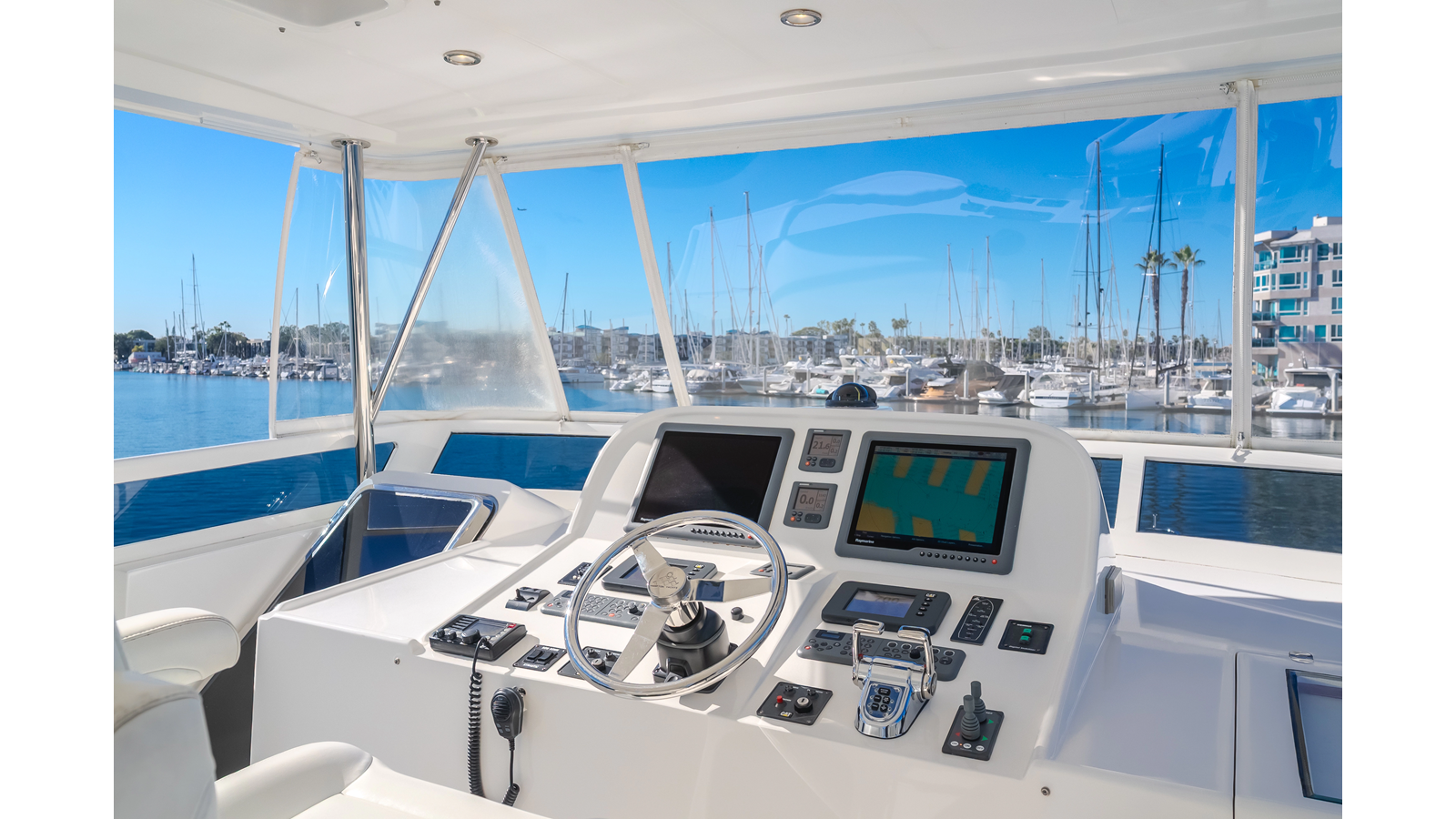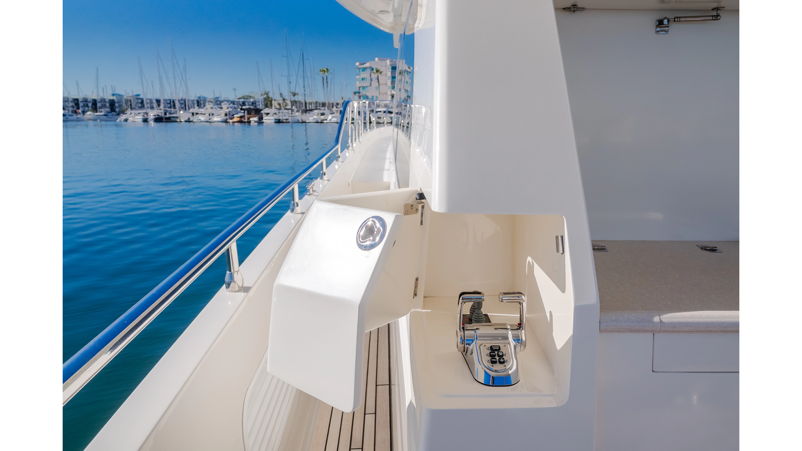 Port & starboard aft deck control wing stations with ZF electronic engine controls(12.2025) & SidePower SP240TCI 15hp electric bow and stern thrusters controls and ZF JMS control system(joystick maneuvering system)