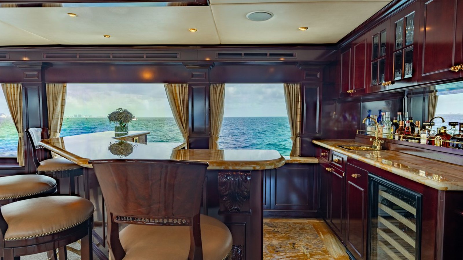 - Wet bar to port w/gold plated sink, custom fixtures, Sub-Zero refrigerator & icemaker