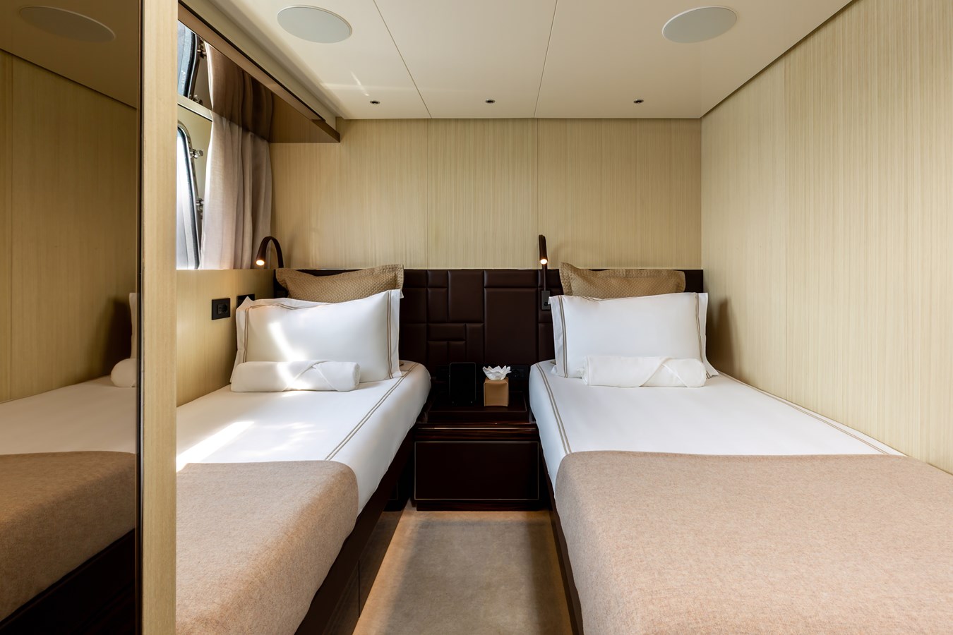 NANGARA is a new SL 106 Asymmetric built in 2024. But do not be mistaken: she is not just another SL106A: her proud owner has customized the interior décor of NANGARA and purchased options to a level rarely achieved on a Sanlorenzo. She is also in Class with RINA and commercially registered. This stunning yacht showcases the owner’s considerable investment in elegant decoration, combining modern luxury with comfort. The light-filled salon features a fold down balcony, offering an open and airy space for relaxation. Located on the main deck, her master cabin offers unparalleled privacy and comfort. The yacht also features 3 double guest cabins and 1 twin cabin/convertible, providing luxurious accommodation for up to 10 guests in total. NANGARA is now for sale by her one and only owner, giving you the opportunity to purchase a turn-key modern and fully loaded yacht.