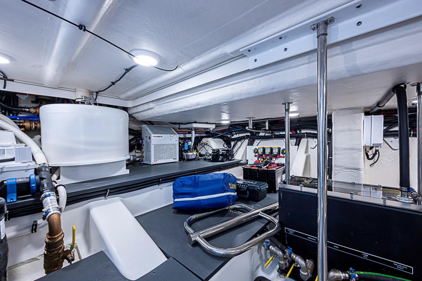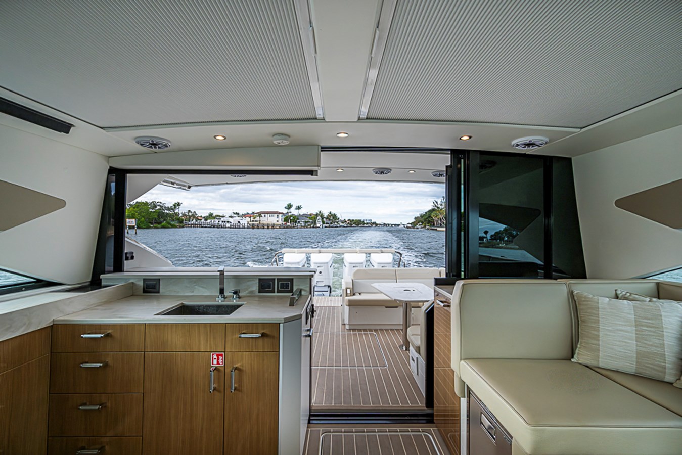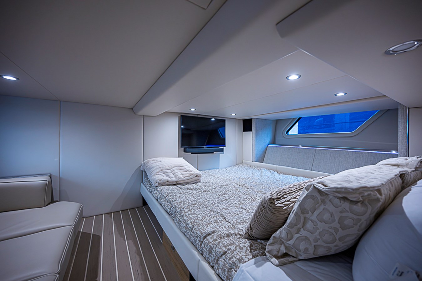 • White speaker covers in cockpit and salon