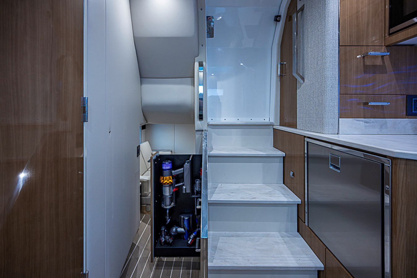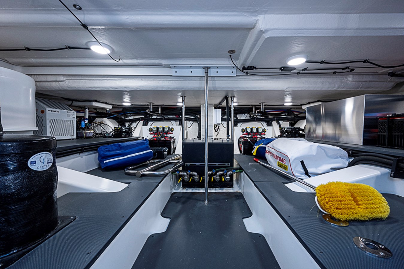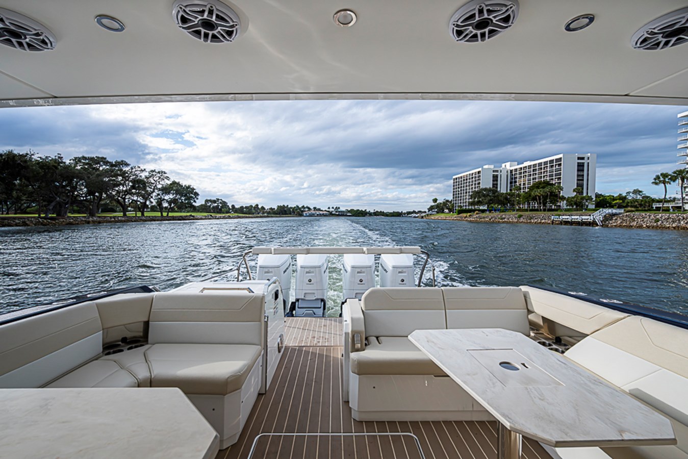 • White speaker covers in cockpit and salon