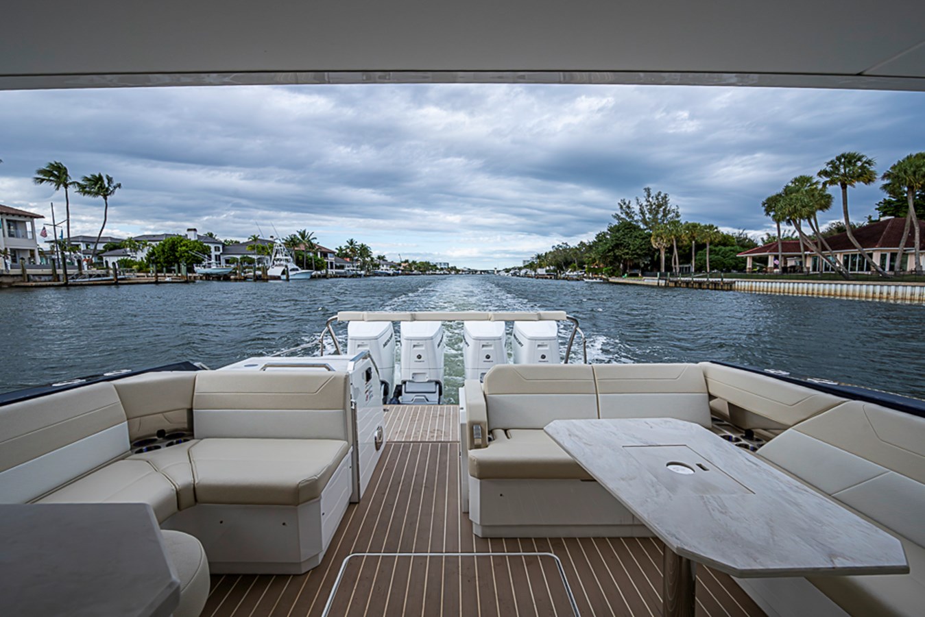 The proven,  surefooted double-step FAS3Tech® hull will take your complement of guests to dinner across the bay or on far-flung offshore journeys in speed and comfort with the confidence and might of the revolutionary all-new quad Mercury V12, 600 horsepower Verado outboards. The horizons are limitless in your 500 Super Sport Crossover.