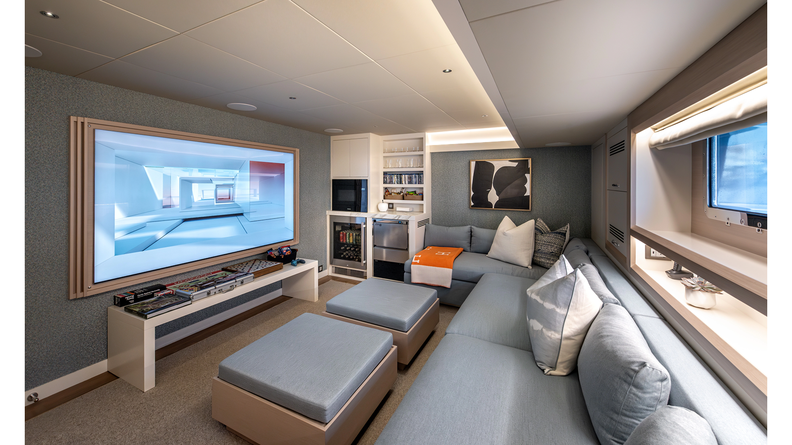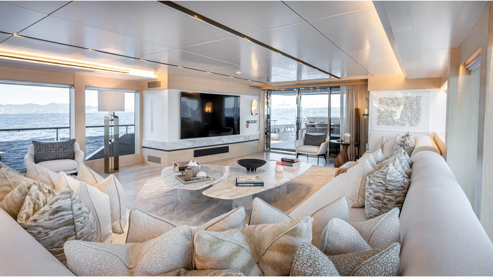 The saloon contains the main entertainments system for the yacht, A Marantz amplifier supplies music to the beach club, cockpit, foredeck and Flybridge in addition to the saloon area, internal speakers are Bowers & Wilkins and external German Maestro Marine type. Sonos, Apple TV, satellite decoder, Bluray player and additional inputs are supplied.