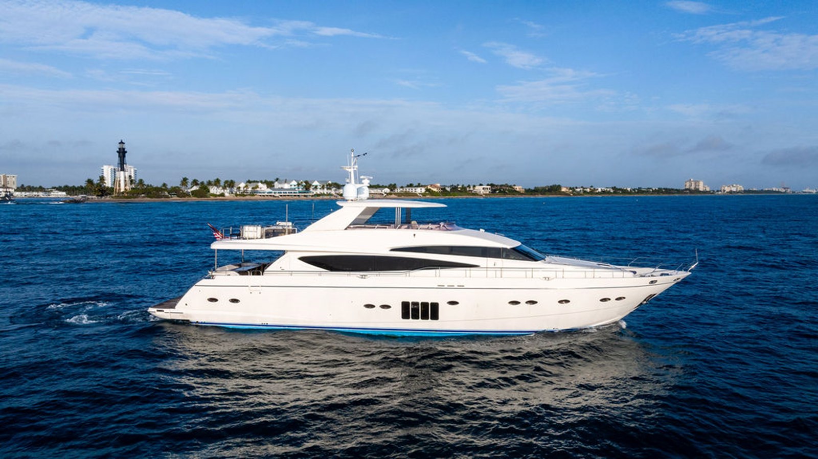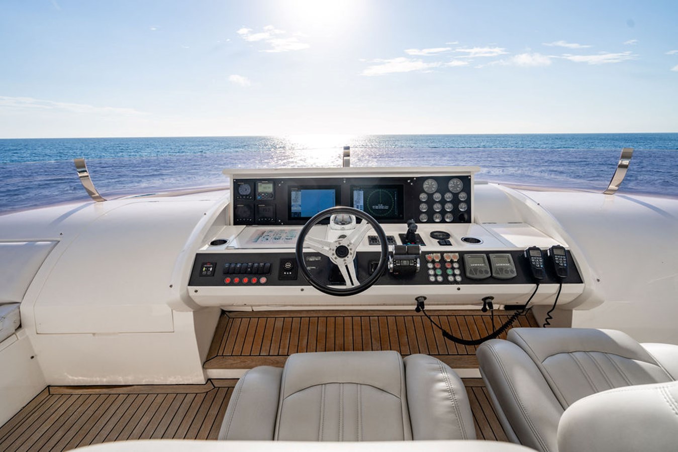 Step aboard the 2010 Princess 95 Motor Yacht, a vessel that embodies pedigree, performance, and prestige. At 96 feet in length with a sleek Deep V fiberglass hull, this yacht delivers the perfect balance of elegance and seaworthiness, ensuring confidence whether cruising the coastline or embarking on extended passages. Powered by twin MTU 16V 2000 M93 engines producing 2,400 horsepower each, this yacht offers exhilarating performance—cruising comfortably at 20 knots with a top speed nearing 28 knots. Precision engineering combines with Princess’s renowned craftsmanship, delivering a smooth, stable ride and the thrill of true performance yachting. Inside, her spacious interior layout is designed for entertaining and relaxation. Expansive salon and dining spaces flow seamlessly into generous outdoor decks, creating multiple zones for gathering with family and guests. The accommodations are refined and luxurious, offering privacy, comfort, and all the modern amenities expected of a yacht in her class. This Princess 95 has been meticulously maintained and is ready for immediate enjoyment. Whether as a private retreat, a family cruising yacht, or a platform for entertaining at the highest level, she stands as a proven performer with timeless styling. Accommodations Guests: 8–10 in 5 cabins (Full-beam Master, VIP, 3 Guest Cabins) Crew: 4–5 in 3 cabins Heads: 4 en-suite guest bathrooms + day head + crew facilities Features and Equipment Stabilizers (zero-speed in many units) Bow and stern thrusters Dual-station helm controls (flybridge & main deck) Teak laid decks, hydraulic swim platform Spacious flybridge with wet bar, grill, and sunbathing areas Main salon with panoramic windows & formal dining area Fully equipped galley State-of-the-art navigation and entertainment systems Standard Equipment Power-assisted hydraulic steering system Dual station hydraulic bow thruster (550kgf/1,213lbf) Dual station hydraulic stern thruster (300kgf/661lbf) Dual station twin hydraulic anchor winches and twin anchors Dual station colour radar and chartplotter/GPS linked to autopilot Navtex Dual station electric trim tabs with indicators Dual station speed and distance log Dual station echo sounder with alarm Dual station remote control searchlight Dual station VHF DSC R/T Twin combination microwave/conventional ovens Telescopic passerelle (4.7m) with remote control Twin transom gates to bathing platform Side boarding doors (port and starboard) Hot and cold transom shower Flybridge crane 24v stern rope mooring winches Twin 40kW diesel generators Twin shore support inlets Twin 100-amp float battery chargers Full air-conditioning Salon LCD TV with DVD/radio and surround-sound system All cabins fitted with LCD TV with DVD/radio sound systems Refrigerator and deep freeze (with ice-maker) in galley Twin refrigerator and wine cooler in saloon Dishwasher Laundry Vacuum WC system Opening doors to both side decks Crew cabins Teak side, cockpit and flybridge decks Stern docking lights Third docking station controls in cockpit