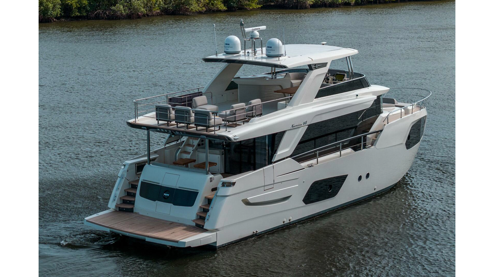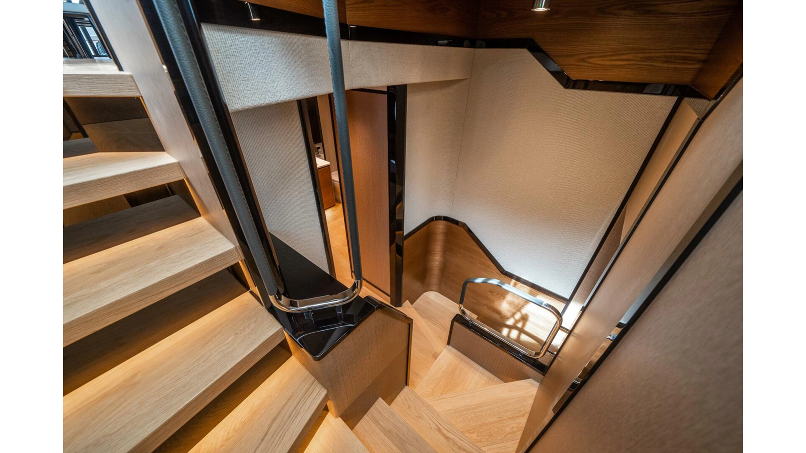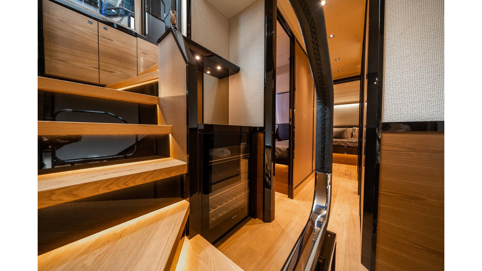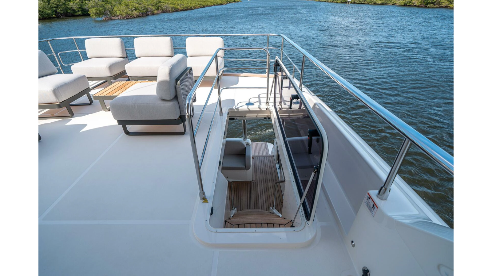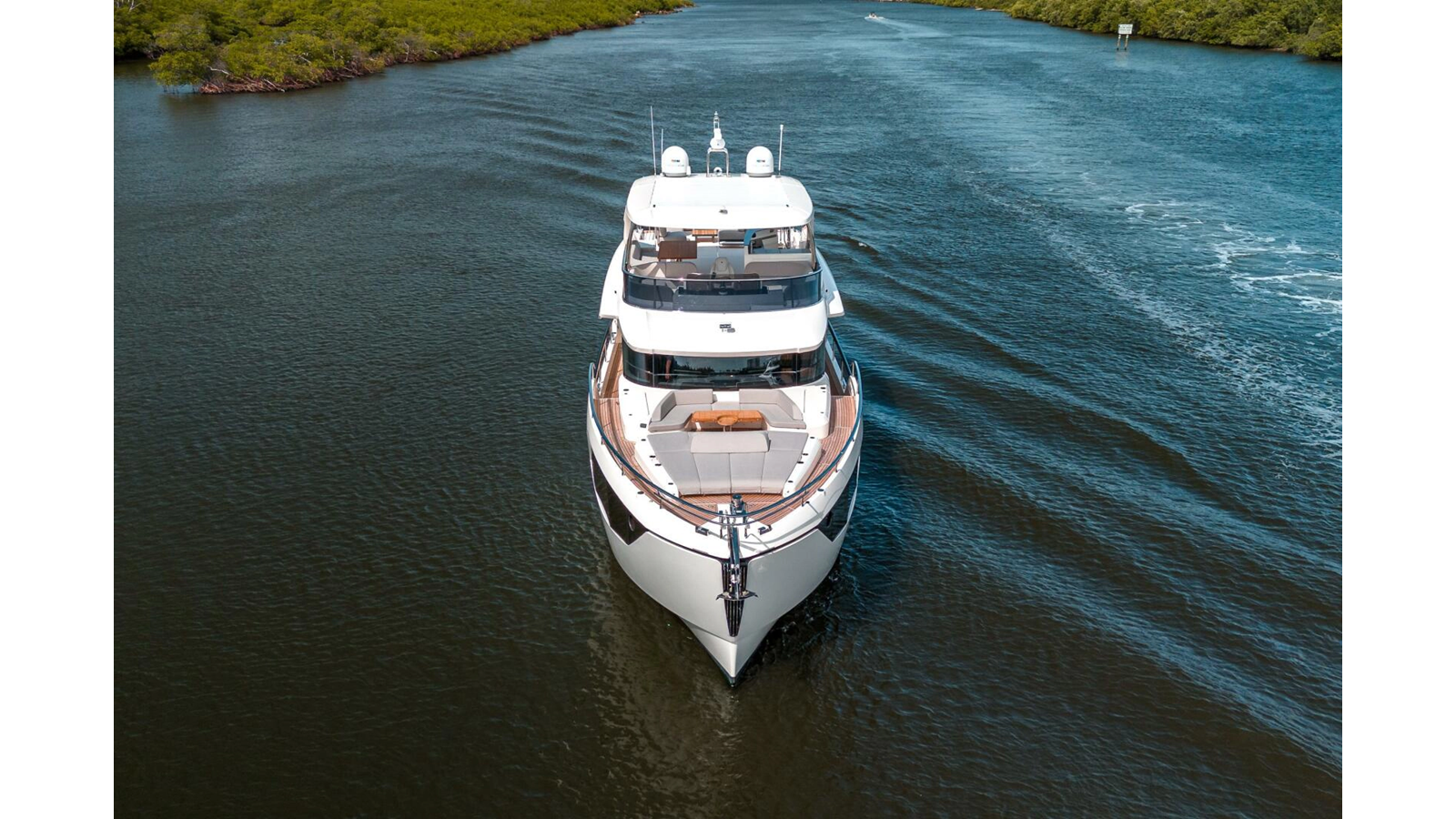 - Lighting kit (courtesy lights all along the floor for deck, cockpit, side walkways and flybridge, white aft underwater lights (four), flybridge aft area lighting and mooring lights, retractable bow decorative lights (four)