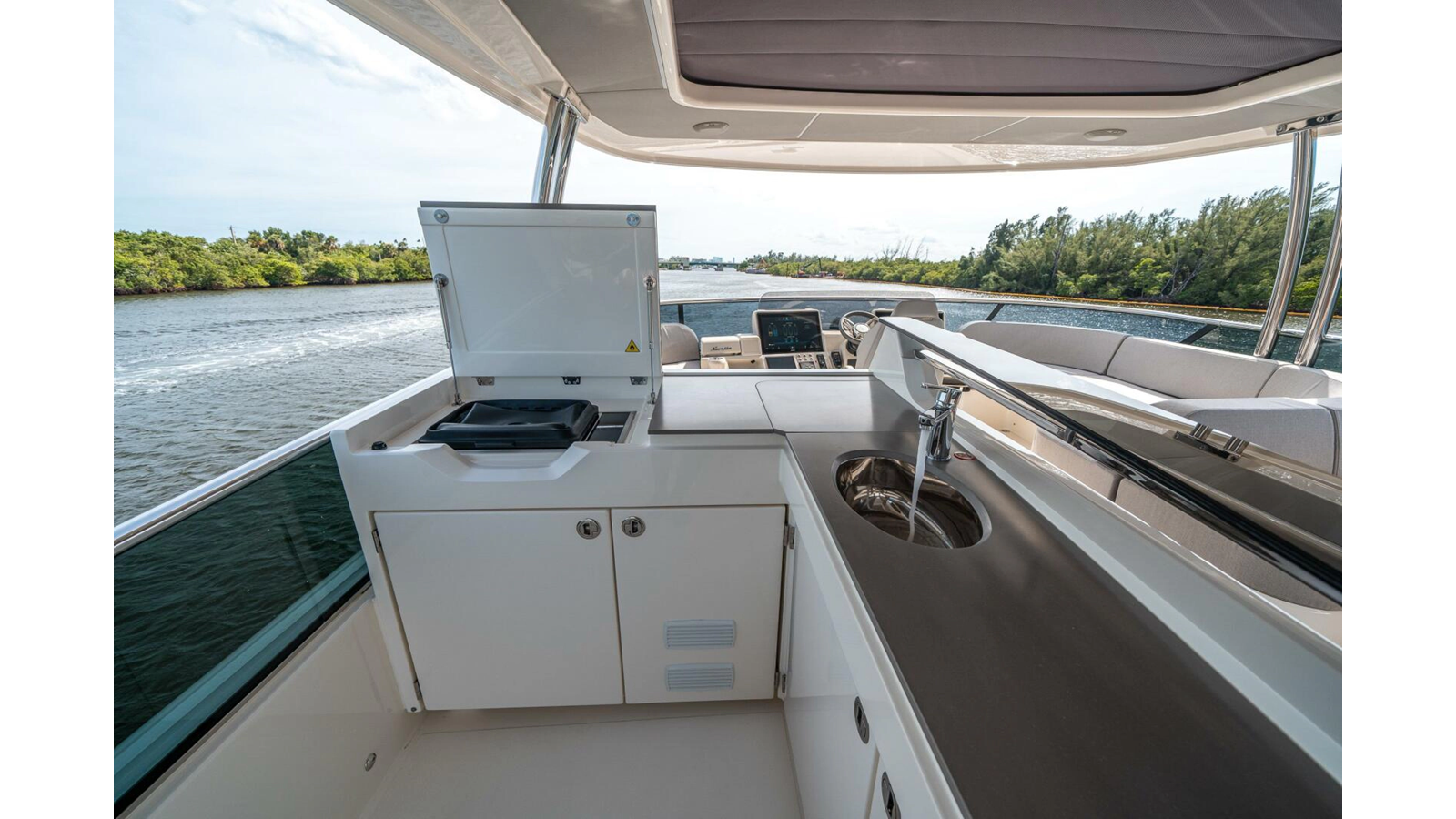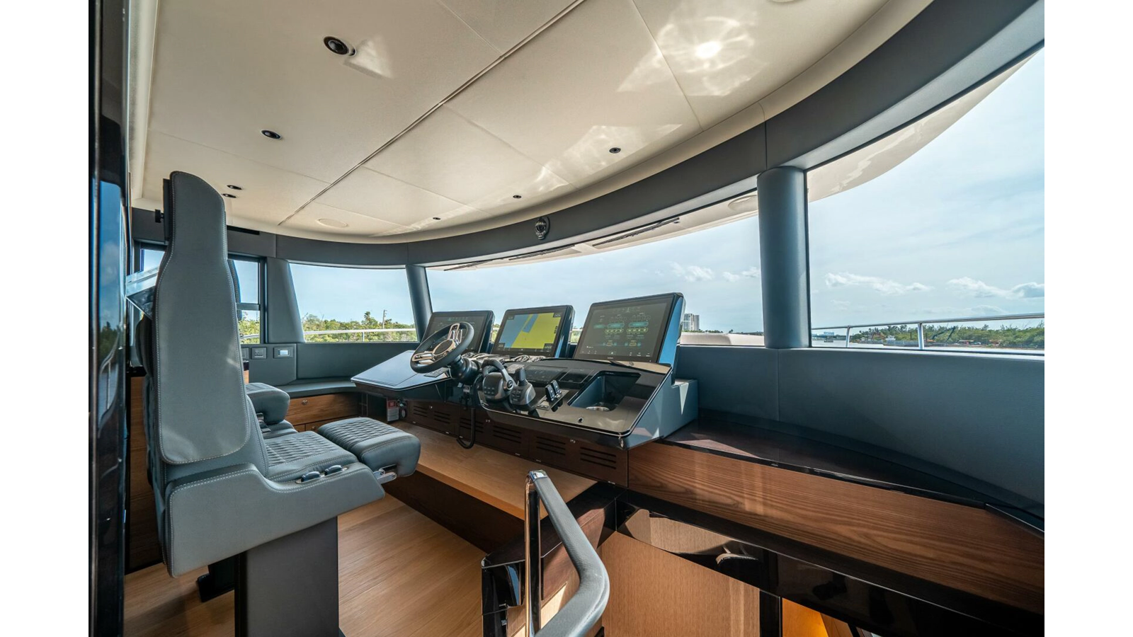- In flybridge dashboard, Radio Stereo Fusion Radio with local volume control in the flybridge and bow area, with party mode connection with salon radio.