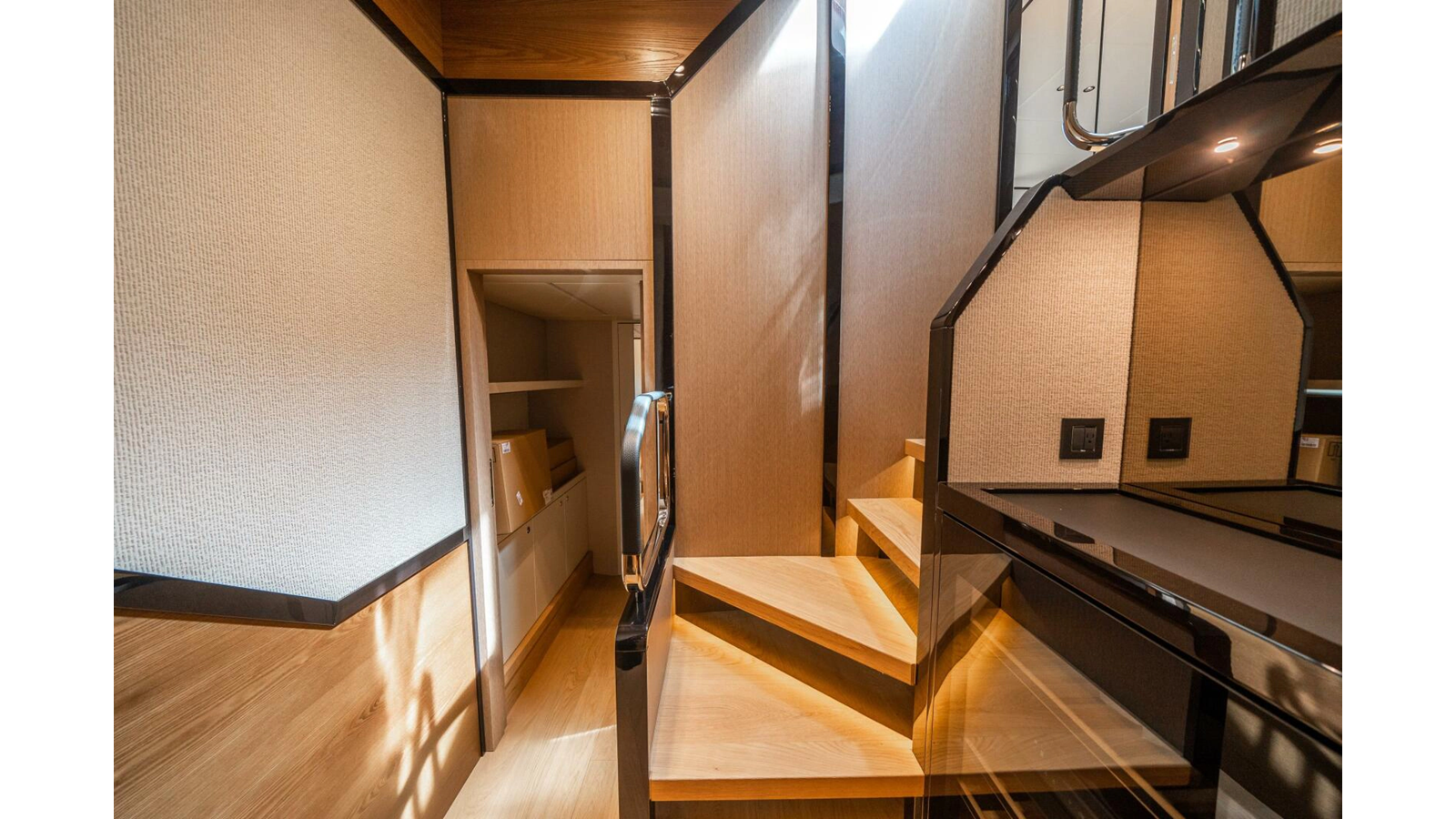 - Hydraulic platform – lifting capacity 600kg (1.323 lbs.), with automatic access stairs, integrated into the platform