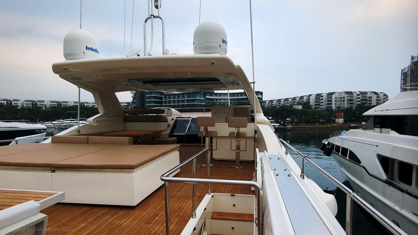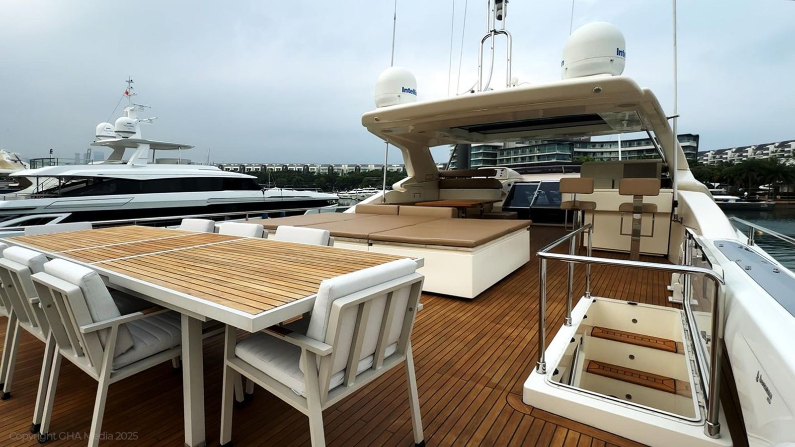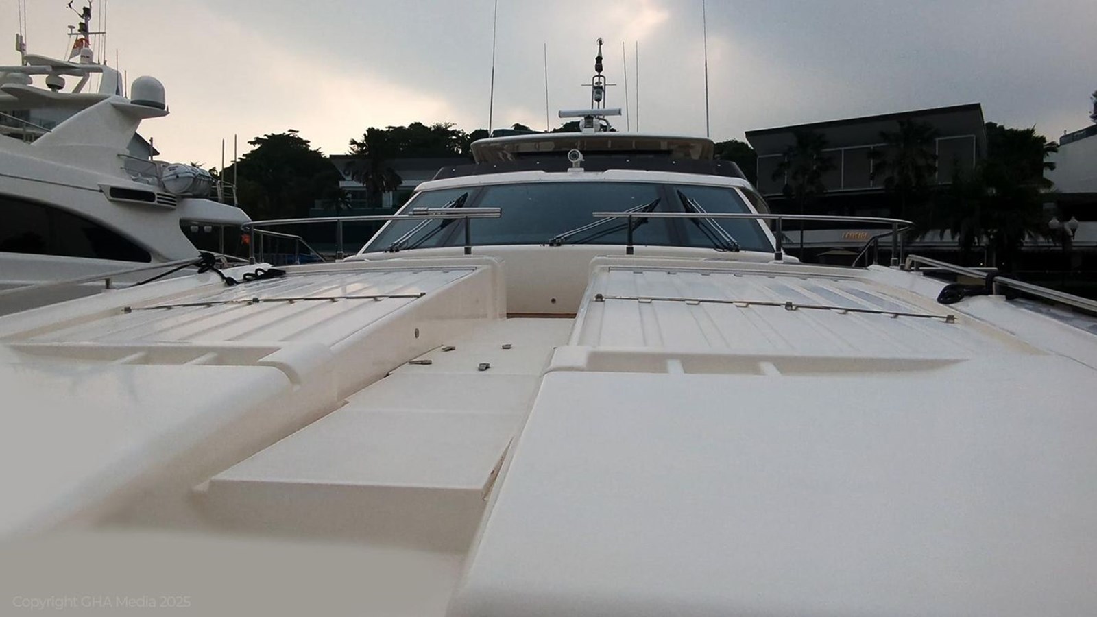 This 2015 Ferretti Custom Line 100 has had just one owner since new and has been privately used—never chartered. Based in Asia since delivery, she was originally in China and is now located in Singapore. The yacht has been looked after by a full-time professional crew and used mainly for relaxed weekend cruising and entertaining friends and family. She features a 5-cabin layout including a full-beam master on the main deck, two VIPs, and two twin cabins below. The interior is bright, spacious, and finished in classic Ferretti styling. Outdoor areas are well laid out, with a large f lybridge, forward sunbathing area, and a comfortable cockpit for alfresco dining. Powered by twin MTU 16V 2000 M94 engines, she cruises comfortably at 20 knots and tops out around 27 knots. She’s fitted with zero-speed stabilisers for comfort at anchor and underway.