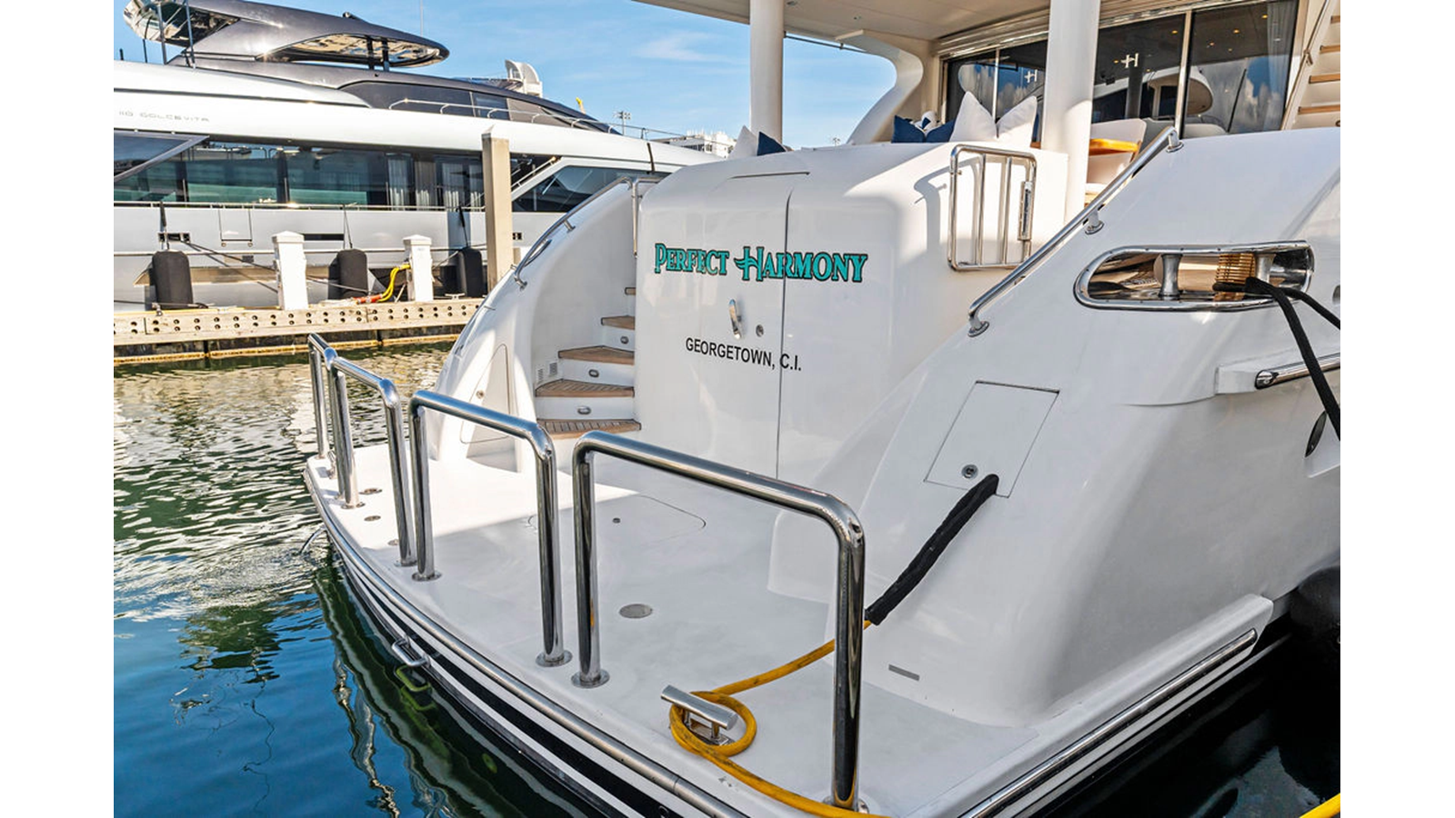 Outstanding performance is provided by her twin Caterpillar C32 engines, each delivering 1800hp, complemented by a 40 kW and a 38 kW Kohler generators. PERFECT HARMONY is capable of cruising at 21 knots, although she typically operates at her economical 14 knots. With a full-beam salon, a spacious full-beam master, and expansive exterior areas, she offers both relaxation and entertainment on the water.