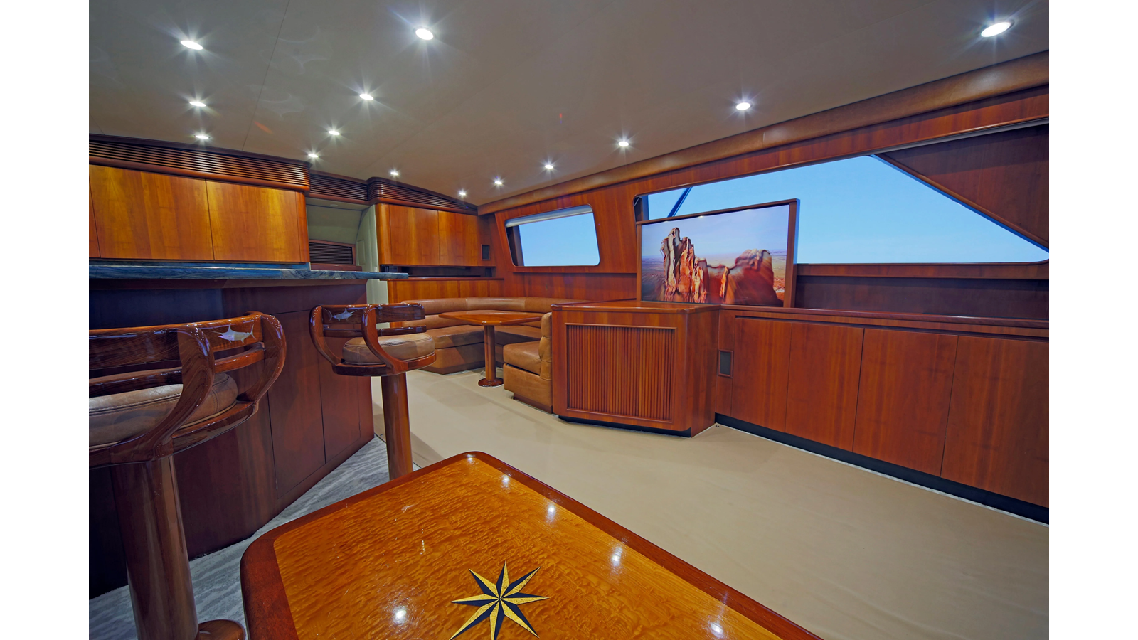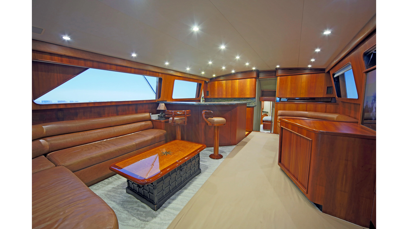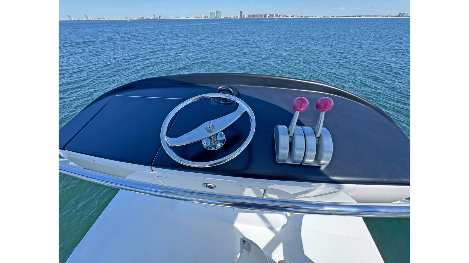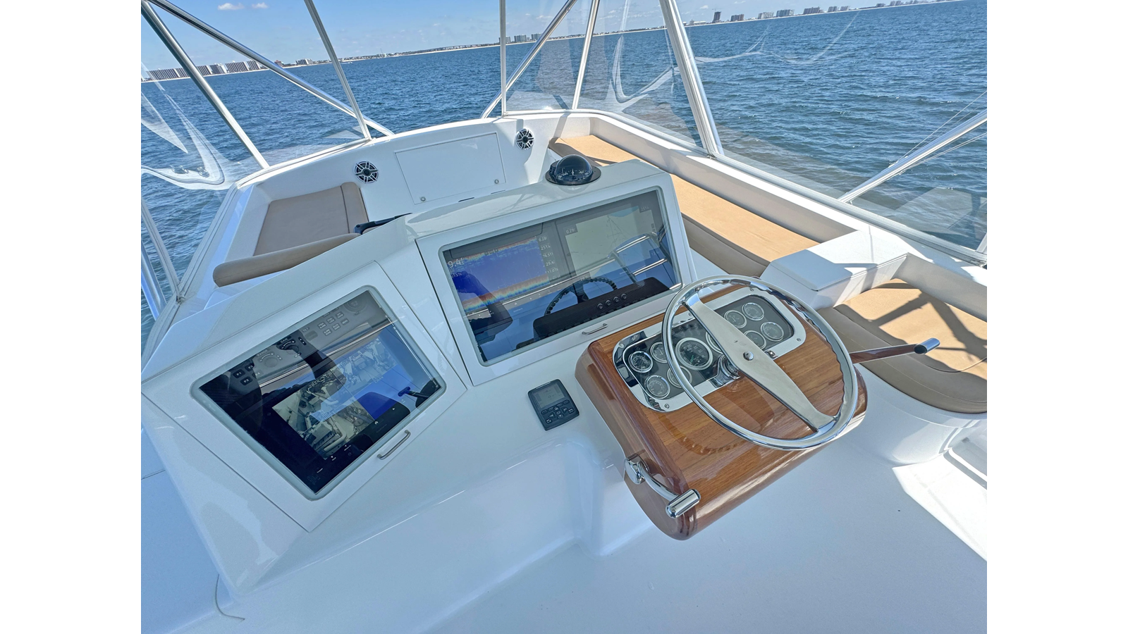 Step aboard “Pier Pressure” to find a continuously updated Jim Smith 65 Open, a masterpiece of luxury and the pinnacle of performance. Maintained with an Open Checkbook, she received a $2,000,000 refit in 2015-2016, which included Full top-end rebuilds on both MTUs, new transmissions, Garmin Electronics, Palm Beach Tuna Tower, and Mezzanine with AC. “Pier Pressure” is impressive at every level, including performance. She boasts a 35 knot cruise, burning 120 gallons/hour with a top end speed of 44 knots, compliments of the Donald Blunt designed bottom. On long offshore trips and tournaments, comfort is key, and the desirable 3 State Room / 3 Head layout provides ample space for guests & crew to enjoy overnight trips or extended stays onboard.
