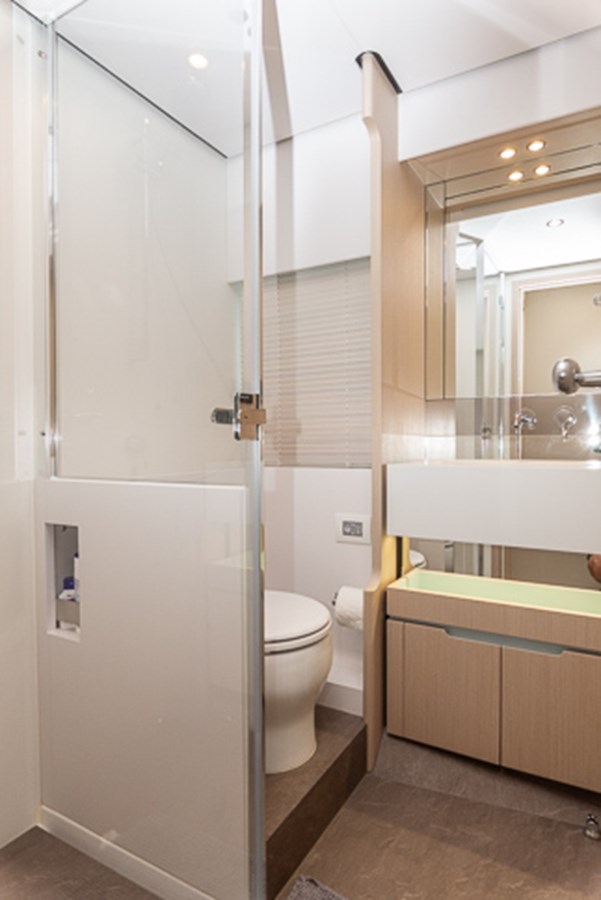 Advance Package, includes: MASE 20kw generator Additional searchlight control at lower helm Air conditioning system 96000BTU Automatic Volvo interceptors system Decor upgrade Electric mooring winches in cockpit Electric searchlight Electric spare conduits Fire estinguishing system Glavanic isolator Miele Appliances Predisposition for watermaker Racor filter for generator Shore water plug Side boarding gates on cockpit Cockpit docking station Proportional bow thruster 10kw Seakeeper stabilizer 18 Parker Watermaker 130 l/h Bow table in teak (fixed) Cockpit table in teak and circular section support Co-pilot seat on fly Dimmer lights on fly Electric privacy awning in cockpit Hard top on flybridge (painted in Etna Grey) Spreader lights on aft fly (nr. 6) Sunshade sail on bow with removable carbon fiber poles Teak on side decks Teak on stern fixed platforms Telescopic gangway Underwater lights (N.4 total, two on transom and one per side) Upgrade standard external cushions in Batyline fabric Electric awning on aft fly Lounge on aft fly with two seats sofa on protside and three seats sofa on starboards in Batyline fabric, squared coffee table in teak Additional storage cabinet in master head Domotic lights in salon Enclosed dressing in master cabin Mosquito nets for portholes Venetian blinds in maindeck Wooden floor White Moon in dinette and helm station Wooden floor White Moon in salon Bidet in Master Cabin Barbecue on standard flybridge furniture Cockpit furniture with refrigerator and sink with teak top Icemaker on flybridge furniture Refrigerator at sight in galley Washerdryer (combo unit) Winecooler in saloon Garmin AIS 800 Garmin Gold Package Hi-Lo system for TV in salon