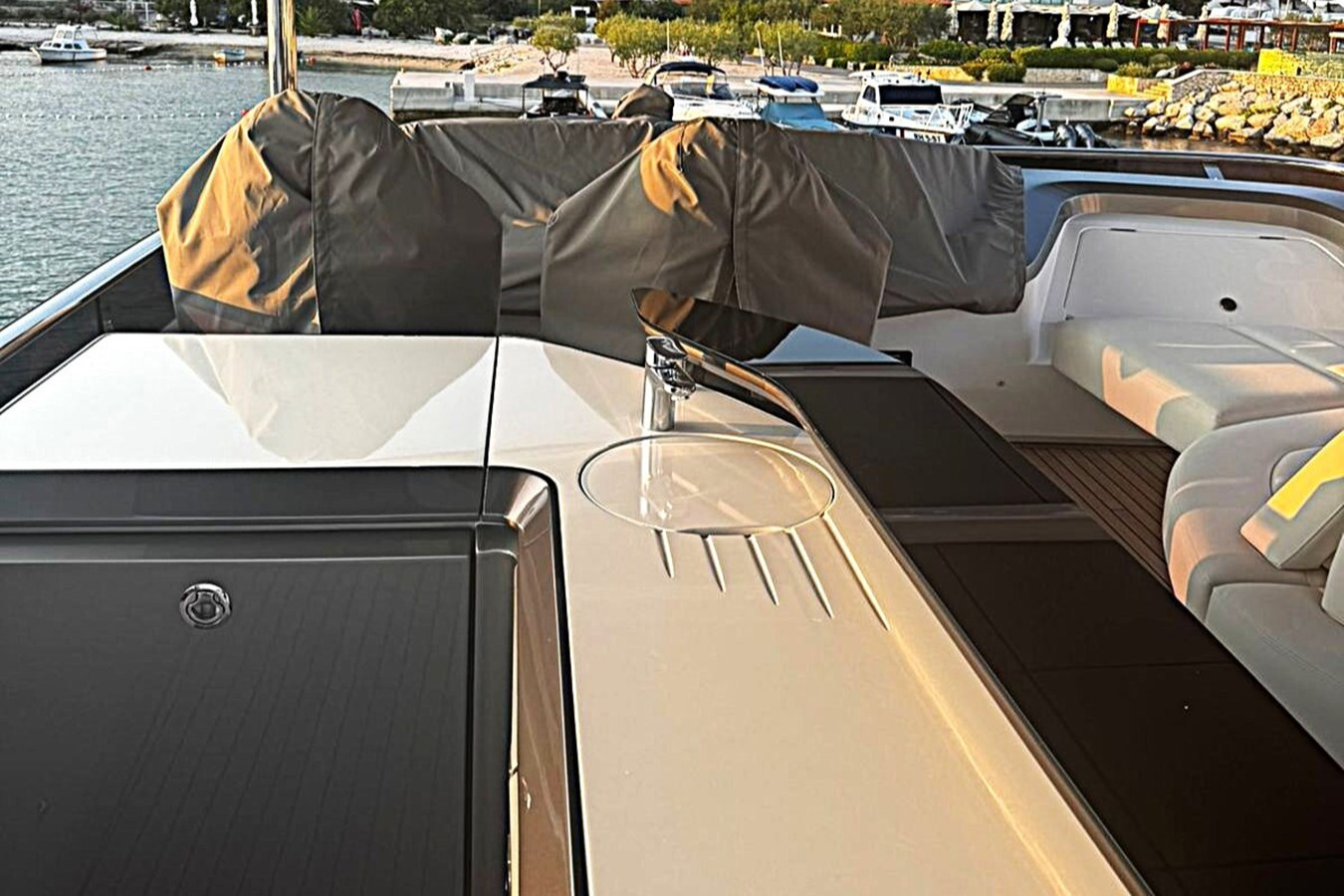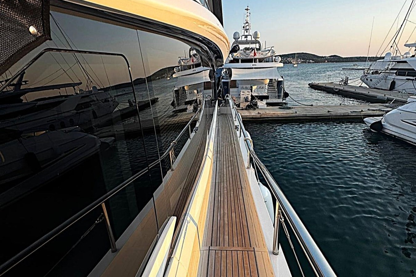 Princess Y72 “SOLOMON” – 2025 – 90 engine hours Location: Trogir, Croatia • Asking: €4,000,000 2*MAN V12-1650 hp with only 35 hours Delivered new to the current owner directly from Princess Yachts in Plymouth in summer 2025, M/Y Solomon represents one of the freshest Princess Y72 examples available today — still under factory warranty until 2027 , with only 90 hours on her twin MAN V12-1650 hp engines . The owner simply wishes to upgrade. Her specification includes most of the desirable factory upgrades: – Hydraulic fin stabilizers for comfort at sea and at anchor – Williams SportJet 395 Tender on hydraulic swim platform – Full teak decks (side decks, flybridge, platform) – Lumishore underwater lights – Premium sound system – Raymarine navigation – Miele and Bosch appliances throughout, incl. wine cooler – Bow & Stern thrusters , 3rd (aft) control post – Hydraulic gangway , folding awning, custom lighting package With a top speed of 35 knots and cruising at 30 knots , Solomon offers fast, quiet, and comfortable stabilized passages. Her 4 ensuite guest cabins include a full-beam master suite , VIP forward, and two convertible twins — ideal for families or guests. Aft crew quarters accommodate two, with private access. All with the refined style for which Princess Yachts are known. The interior by Princess Design Studio reflects the newest generation of Princess style — open-plan, flooded with natural light, and beautifully detailed in warm wood and leather. Every element feels considered, fresh, and contemporary — as it should on a 2025 model. Currently berthed in Trogir , just 20 minutes from Split International Airport (SPU) or 1.5 hours from Zadar, she’s ideally located for convenient inspections and immediate cruising in the Mediterranean. If you are comparing Sunseeker 75 Yacht , Ferretti 720 , Azimut 72 Fly , or Sanlorenzo SL78 , you’ll find the Princess Y72 to be one of the most balanced options in this class — combining luxury, build quality, and seakeeping in a yacht that truly feels modern. To receive the full photo gallery , detailed options list , and layout drawings , simply send a short inquiry — I’ll WhatsApp you back.