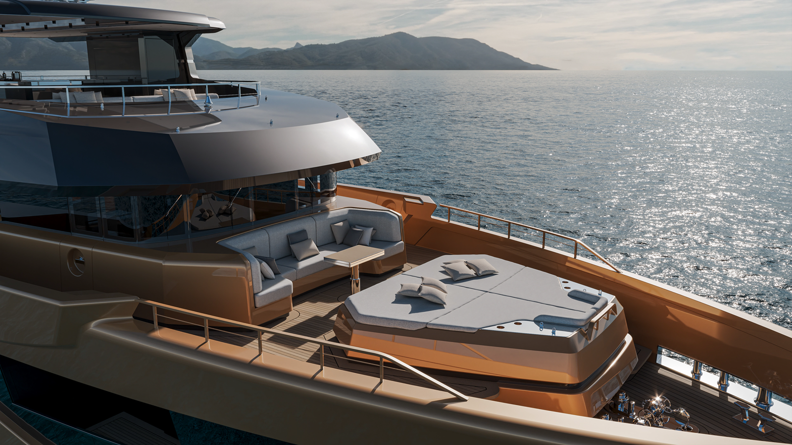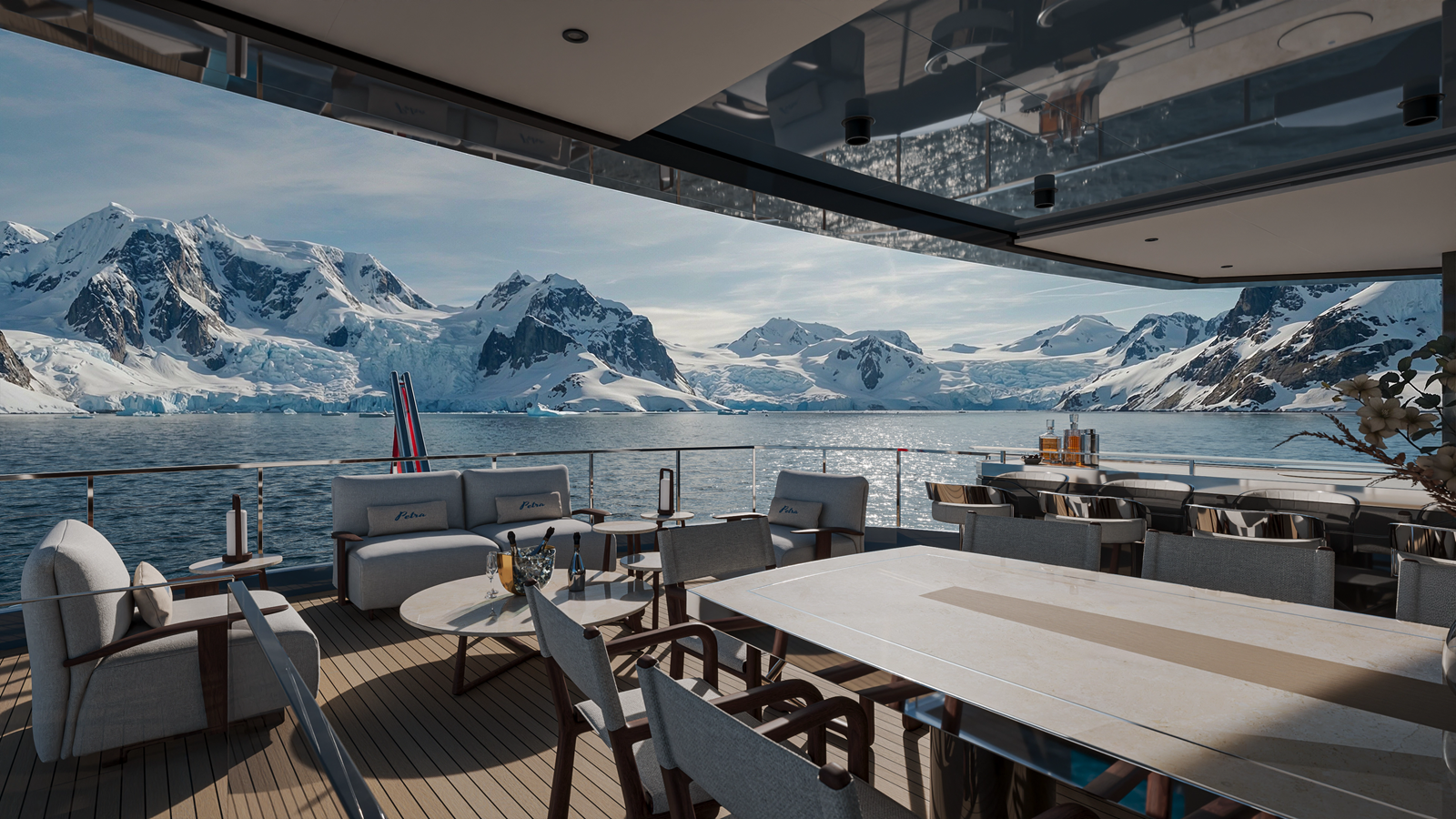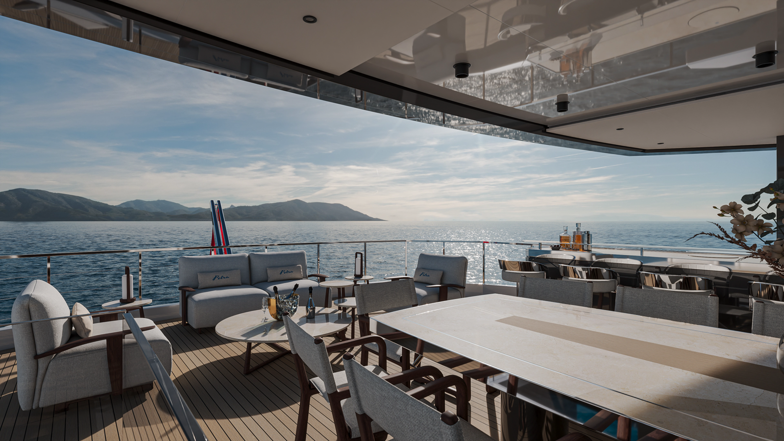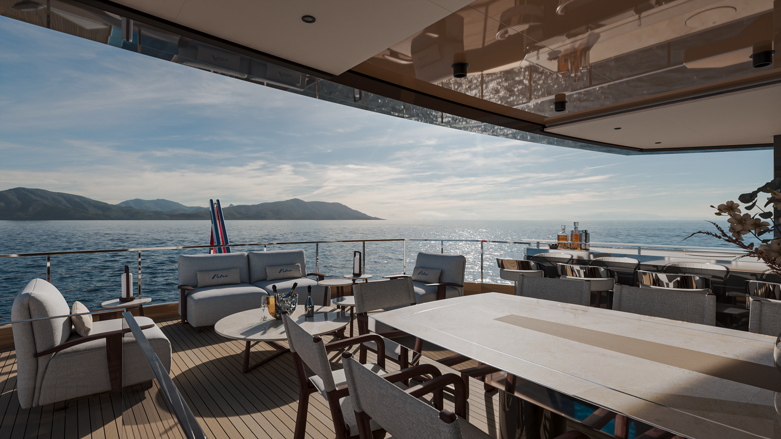 - Deck Furniture: Built-in exterior furniture by shipyard; loose furniture owner supply