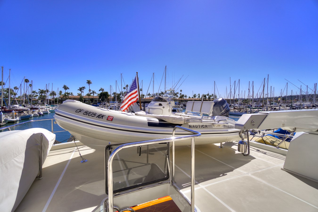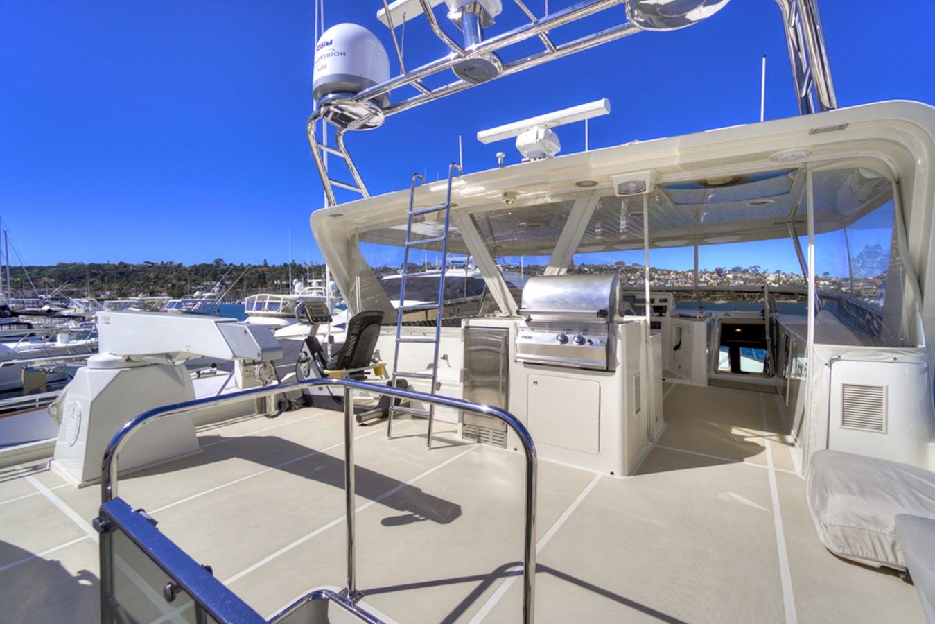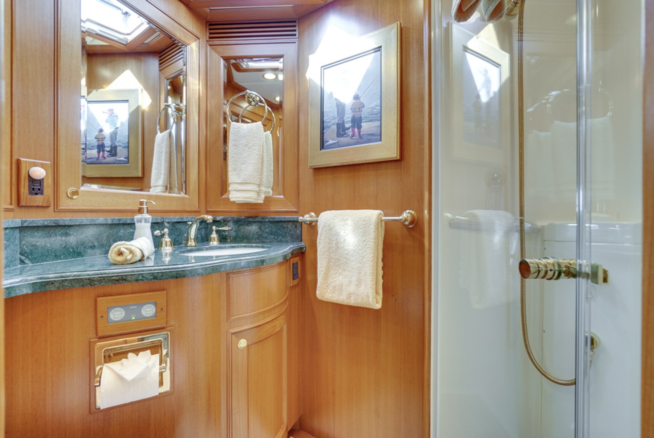 - Seafire automatic fire system “Halon style” in the forward bilge, battery compartment, and plumbed to both generators.
