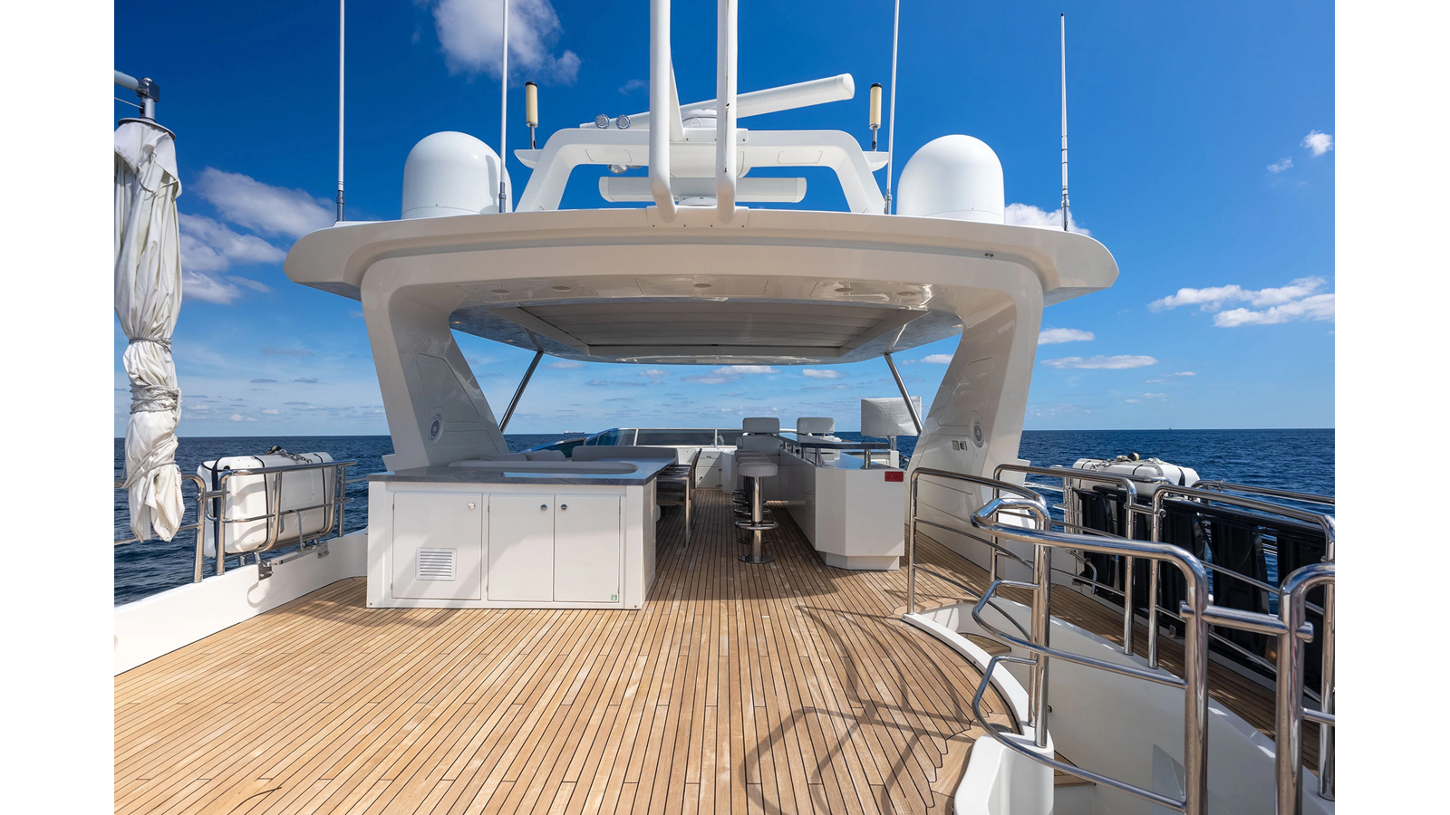 - Custom bbq cabinet in the aft starboard corner equipped with one Kenyon Texan grill